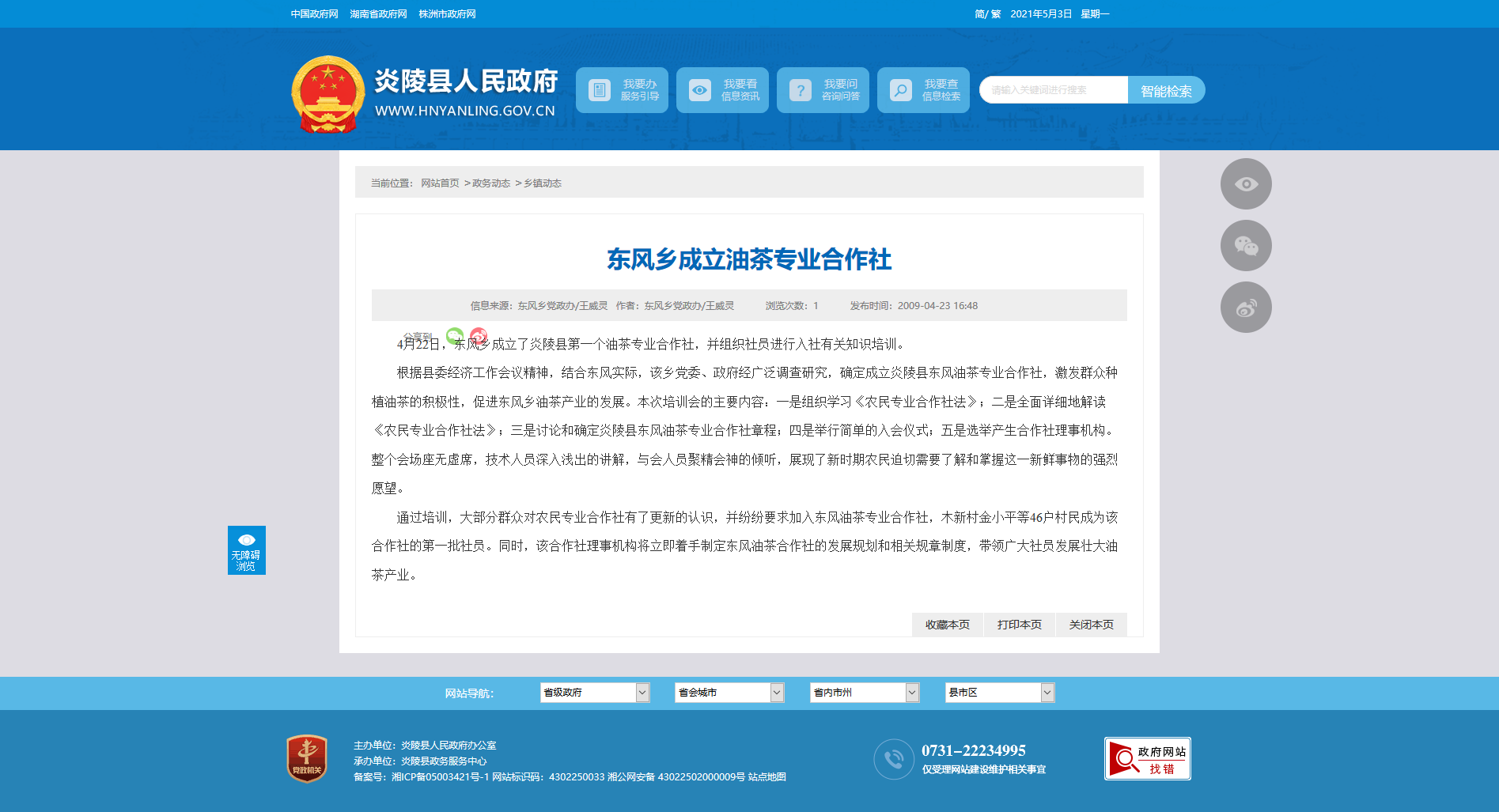 4月22日,东风乡成立了炎陵县第一个油茶专业合作社,并组织社员进行入社有关知识培训。