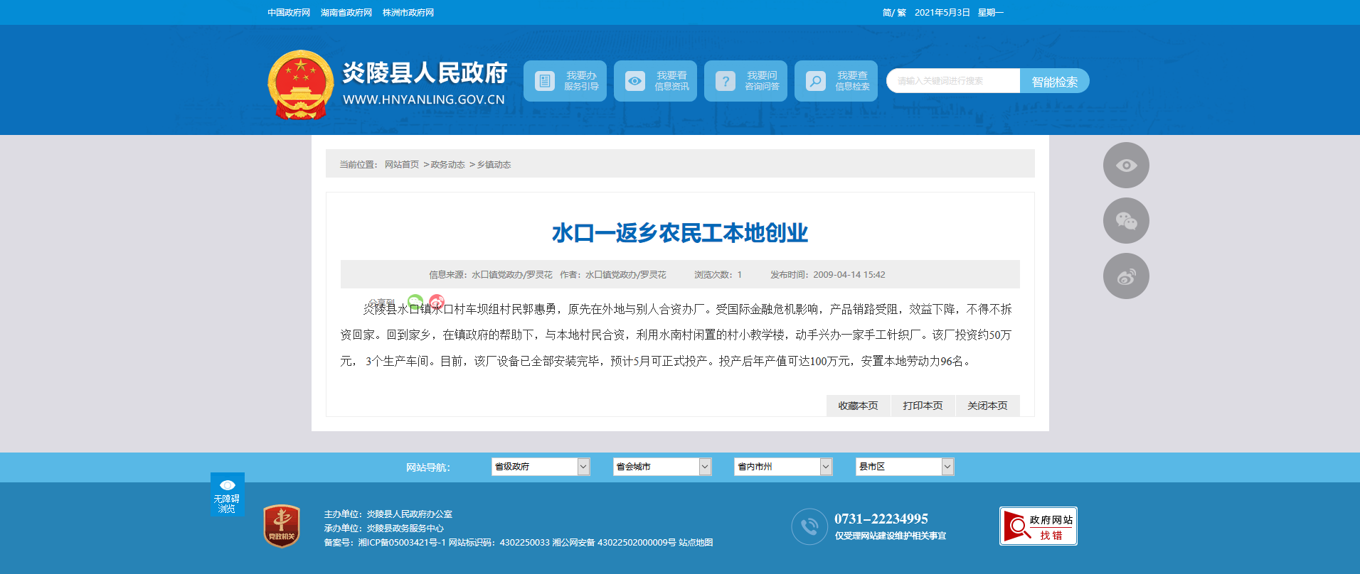 时间:2009-04-14 15:42:00 来源: 炎陵县人民政府 来源截图