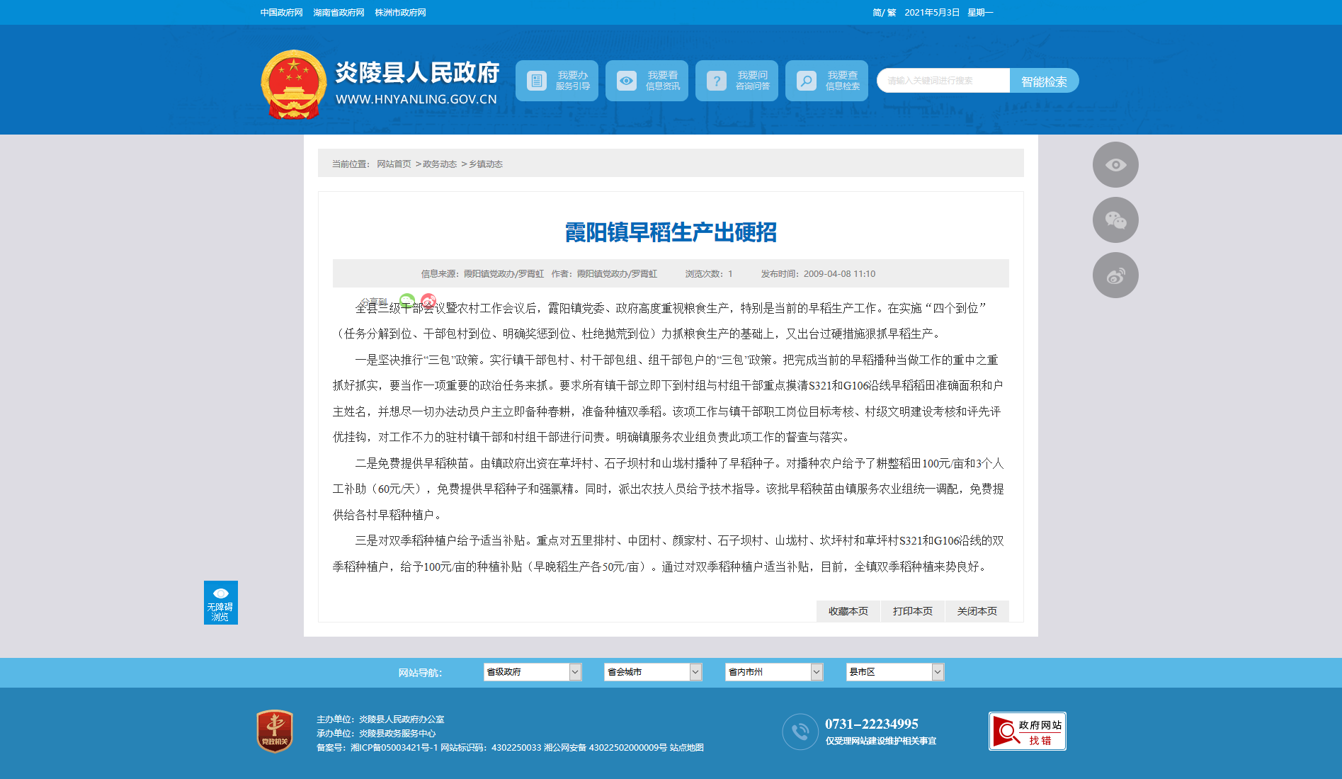 全县三级干部会议暨农村工作会议后,霞阳镇党委、政府高度重视粮食生产,特别是当前的早稻生产工作。在实施“四个到位” (任务分解到位、干部包村到位、明确奖惩到位、杜绝抛荒到位)力抓粮食生产的基础上,又出台过硬措施狠抓早稻生产。