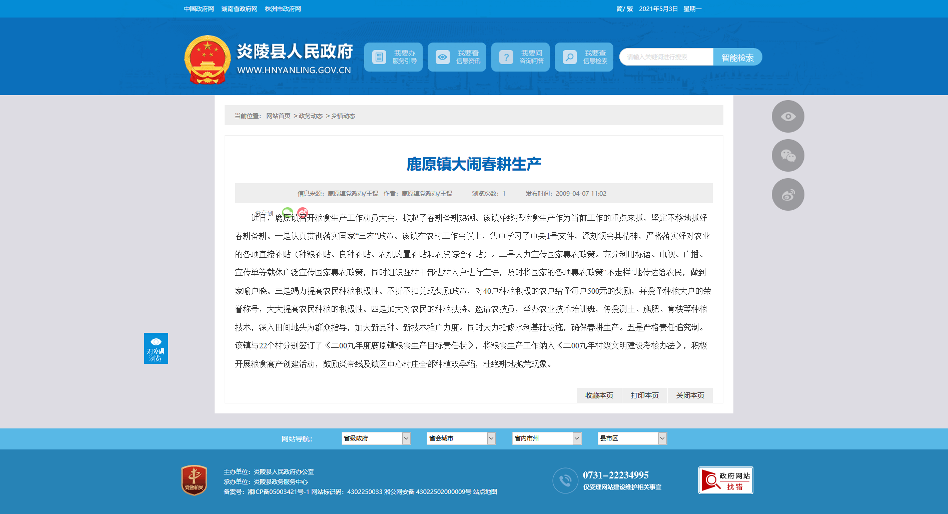 近日,鹿原镇召开粮食生产工作动员大会,掀起了春耕备耕热潮。该镇始终把粮食生产作为当前工作的重点来抓,坚定不移地抓好春耕备耕。一是认真贯彻落实国家“三农”政策。该镇在农村工作会议上,集中学习了中央1号文件,深刻领会其精神,严格落实好对农业的各项直接补贴(种粮补贴、良种补贴、农机购置补贴和农资综合补贴)。二是大力宣传国家惠农政策。充分利用标语、电视、广播、宣传单等载体广泛宣传国家惠农政策,同时组织驻村干部进村入户进行宣讲,及时将国家的各项惠农政策“不走样”地传达给农民,做到家喻户晓。三是竭力提高农民种粮积极性。不折不扣兑现奖励政策,对40户种粮积极的农户给予每户500元的奖励,并授予种粮大户的荣誉称号,大大提高农民种粮的积极性。四是加大对农民的种粮扶持。邀请农技员,举办农业技术培训班,传授测土、施肥、育秧等种粮技术,深入田间地头为群众指导,加大新品种、新技术推广力度。同时大力抢修水利基础设施,确保春耕生产。五是严格责任追究制。该镇与22个村分别签订了《二00九年度鹿原镇粮食生产目标责任状》,将粮食生产工作纳入《二00九年村级文明建设考核办法》,积极开展粮食高产创建活动,鼓励炎帝线及镇区中心村庄全部种植双季稻,杜绝耕地抛荒现象。