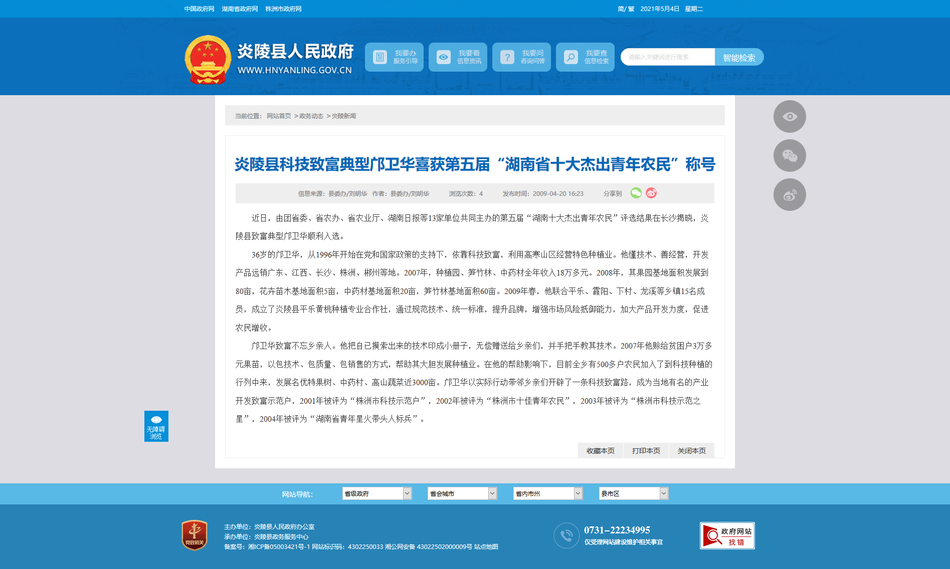 近日,由团省委、省农办、省农业厅、湖南日报等13家单位共同主办的第五届“湖南十大杰出青年农民”评选结果在长沙揭晓,炎陵县致富典型邝卫华顺利入选。