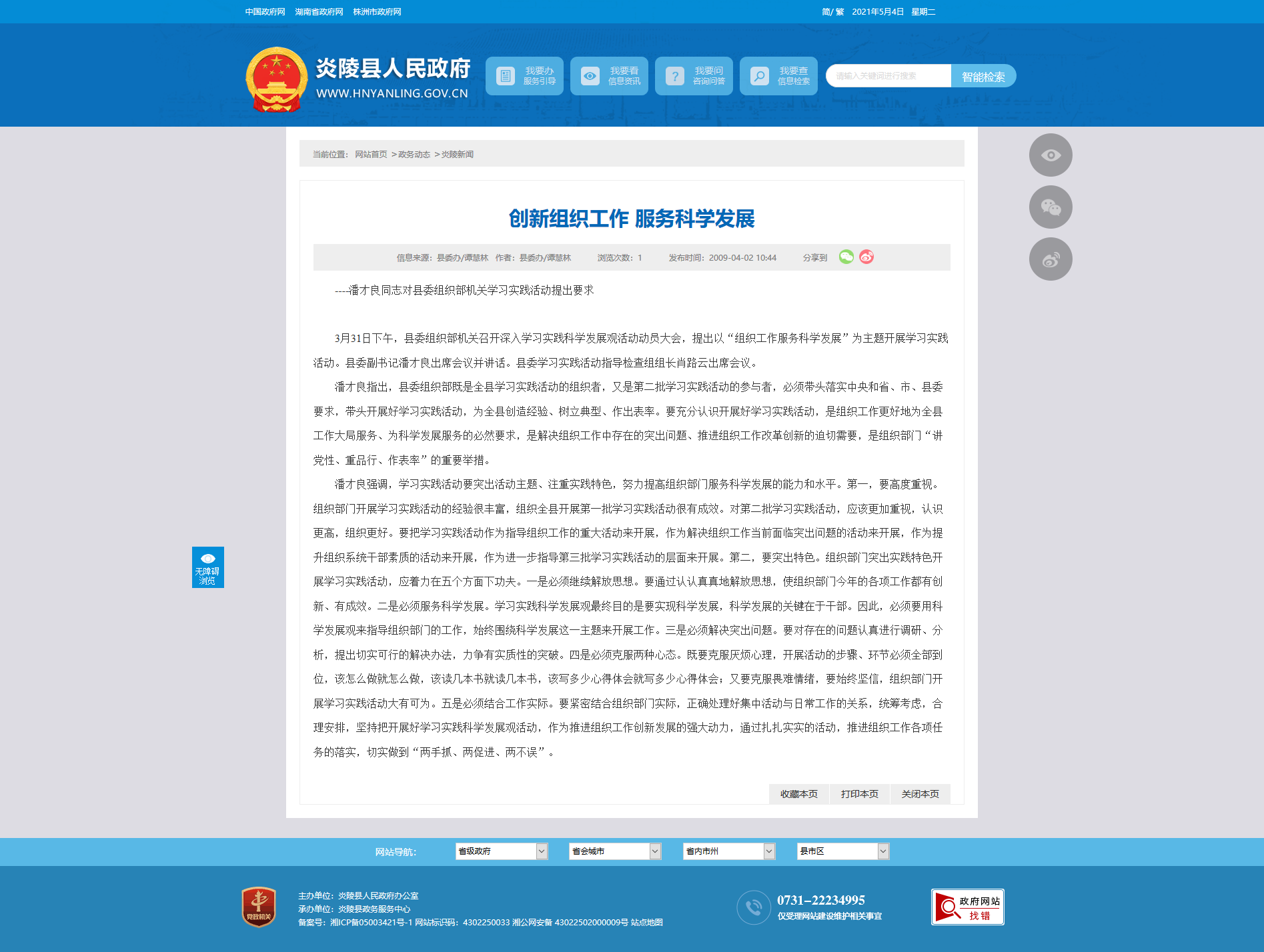 ----潘才良同志对县委组织部机关学习实践活动提出要求