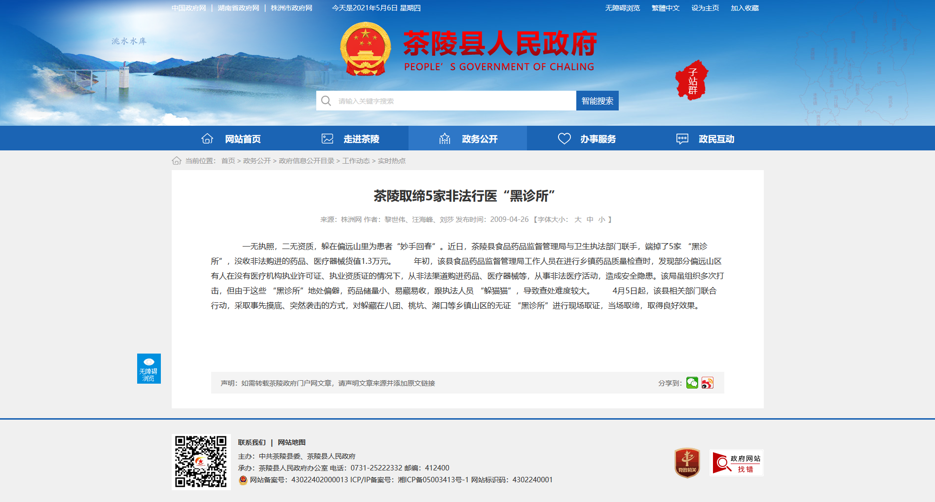 一无执照,二无资质,躲在偏远山里为患者“妙手回春”。近日,茶陵县食品药品监督管理局与卫生执法部门联手,端掉了5家 “黑诊所”,没收非法购进的药品、医疗器械货值1.3万元。 年初,该县食品药品监督管理局工作人员在进行乡镇药品质量检查时,发现部分偏远山区有人在没有医疗机构执业许可证、执业资质证的情况下,从非法渠道购进药品、医疗器械等,从事非法医疗活动,造成安全隐患。该局虽组织多次打击,但由于这些 “黑诊所”地处偏僻,药品储量小、易藏易收,跟执法人员 “躲猫猫”,导致查处难度较大。 4月5日起,该县相关部门联合行动,采取事先摸底、突然袭击的方式,对躲藏在八团、桃坑、湖口等乡镇山区的无证 “黑诊所”进行现场取证,当场取缔,取得良好效果。