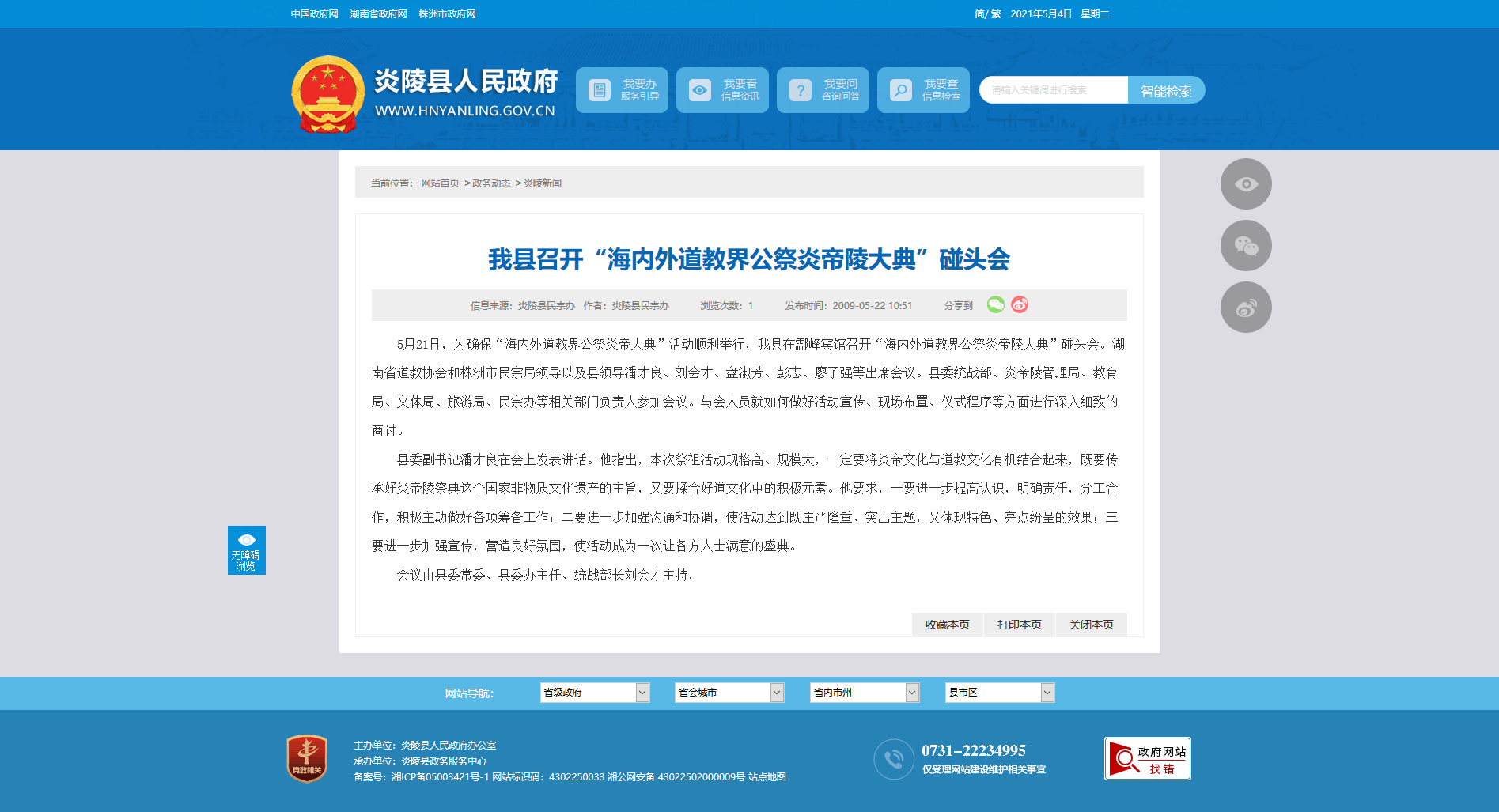时间:2009-05-22 10:51:00 来源: 炎陵县人民政府 来源截图