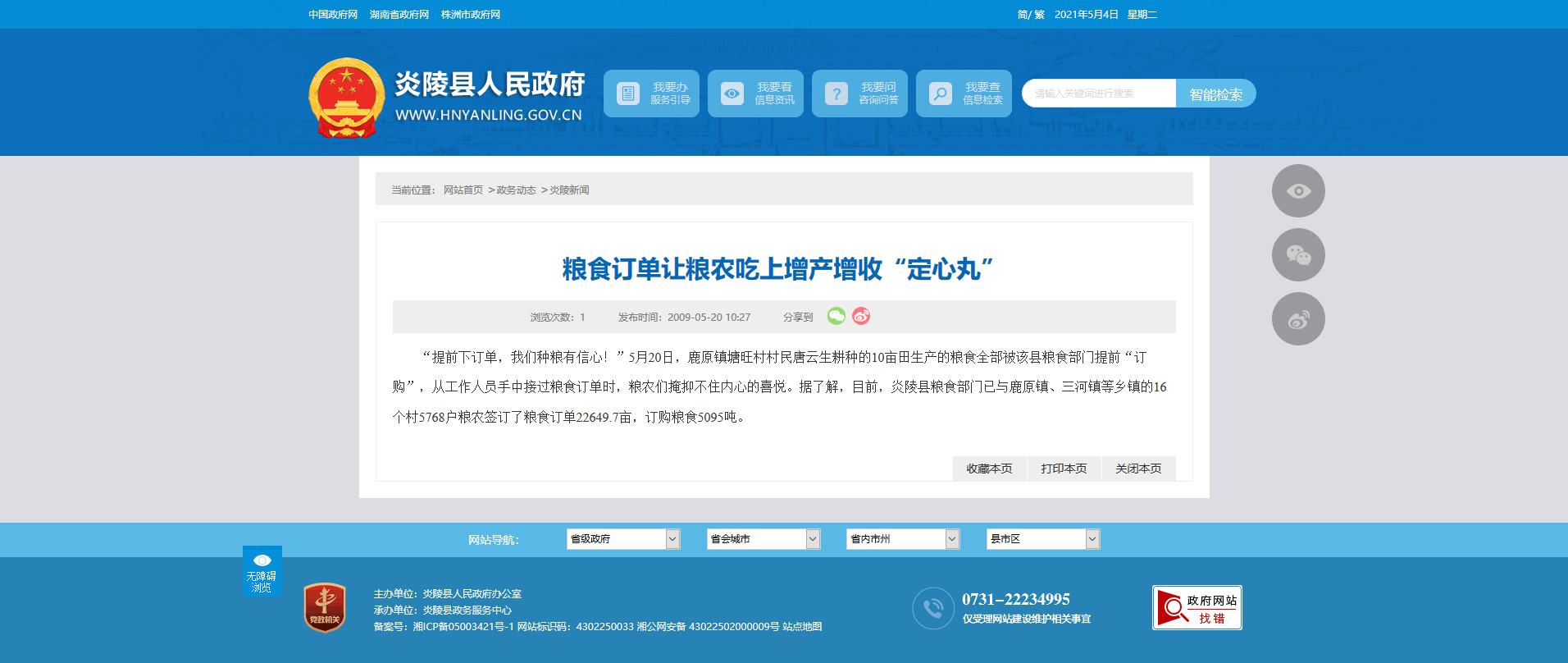 时间:2009-05-20 10:27:00 来源: 炎陵县人民政府 来源截图