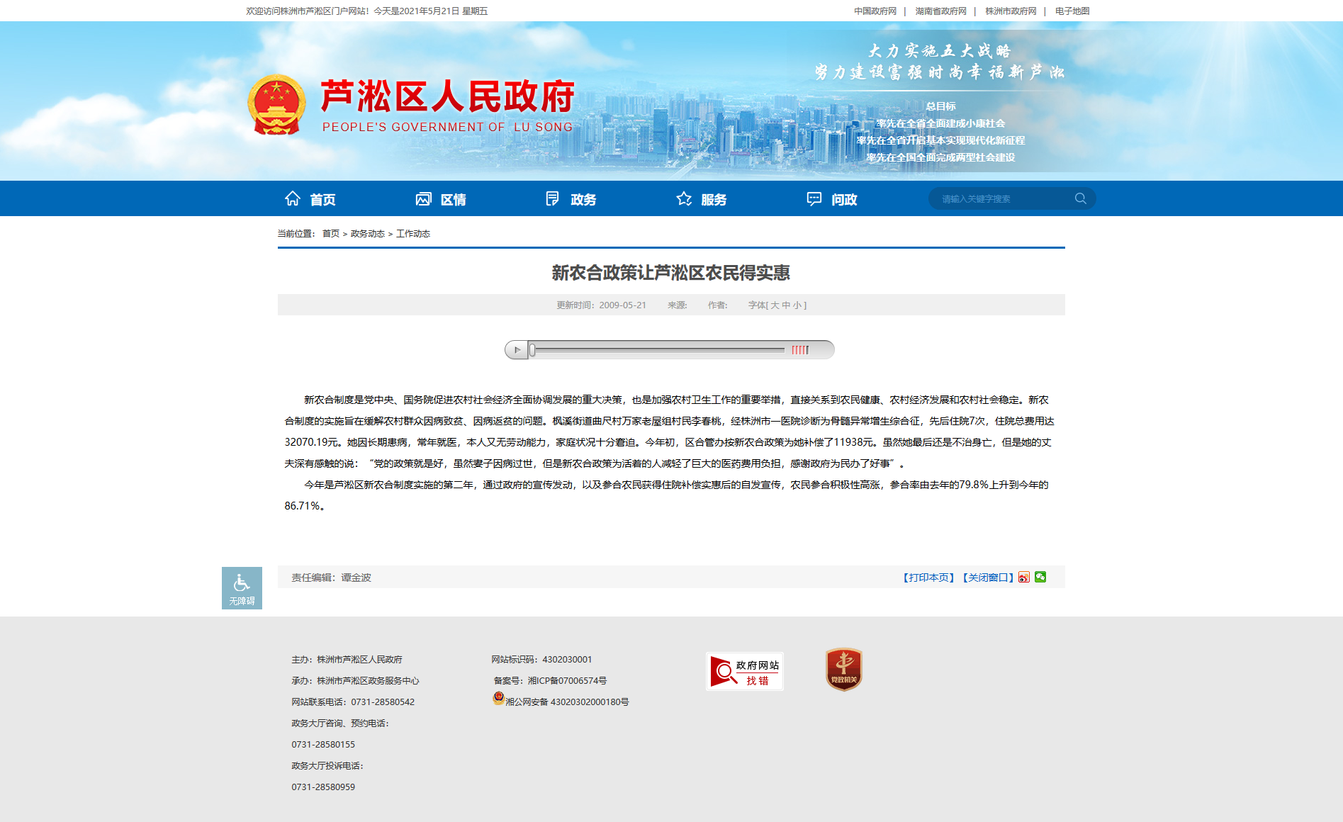 新农合制度是党中央、国务院促进农村社会经济全面协调发展的重大决策,也是加强农村卫生工作的重要举措,直接关系到农民健康、农村经济发展和农村社会稳定。新农合制度的实施旨在缓解农村群众因病致贫、因病返贫的问题。枫溪街道曲尺村万家老屋组村民李春桃,经株洲市一医院诊断为骨髓异常增生综合征,先后住院7次,住院总费用达32070.19元。她因长期患病,常年就医,本人又无劳动能力,家庭状况十分窘迫。今年初,区合管办按新农合政策为她补偿了11938元。虽然她最后还是不治身亡,但是她的丈夫深有感触的说:“党的政策就是好,虽然妻子因病过世,但是新农合政策为活着的人减轻了巨大的医药费用负担,感谢政府为民办了好事”。 今年是芦淞区新农合制度实施的第二年,通过政府的宣传发动,以及参合农民获得住院补偿实惠后的自发宣传,农民参合积极性高涨,参合率由去年的79.8%上升到今年的86.71%。