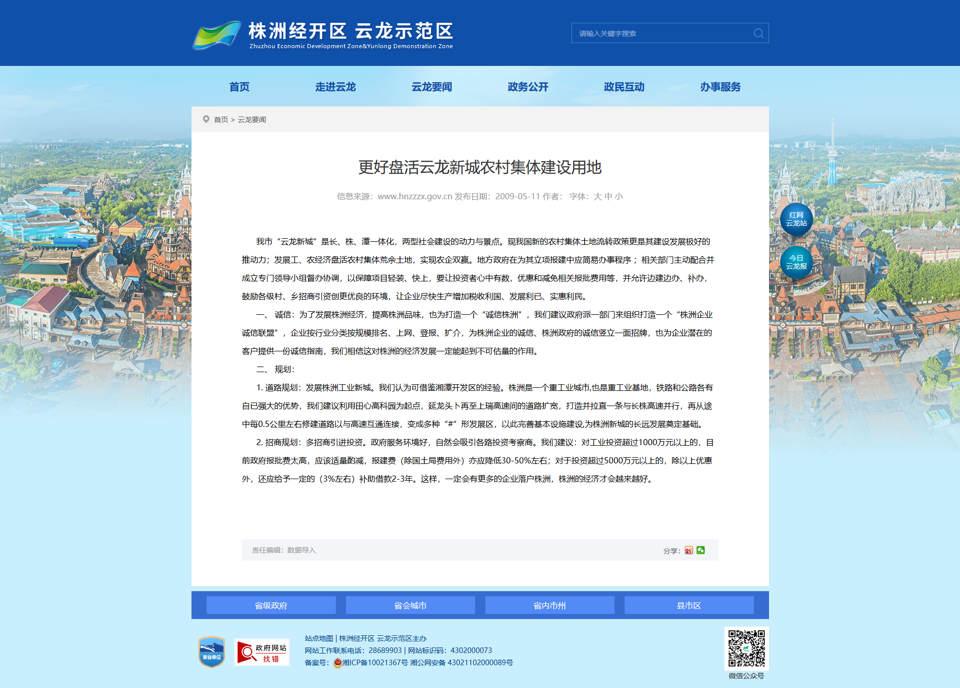 我市“云龙新城”是长、株、潭一体化,两型社会建设的动力与景点。现我国新的农村集体土地流转政策更是其建设发展极好的推动力;发展工、农经济盘活农村集体荒余土地,实现农企双赢。地方政府在为其立项报建中应简易办事程序 ;相关部门主动配合并成立专门领导小组督办协调,以保障项目轻装、快上,要让投资者心中有数,优惠和减免相关报批费用等,并允许边建边办、补办,鼓励各级村、乡招商引资创更优良的环境,让企业尽快生产增加税收利国、发展利已、实惠利民。
