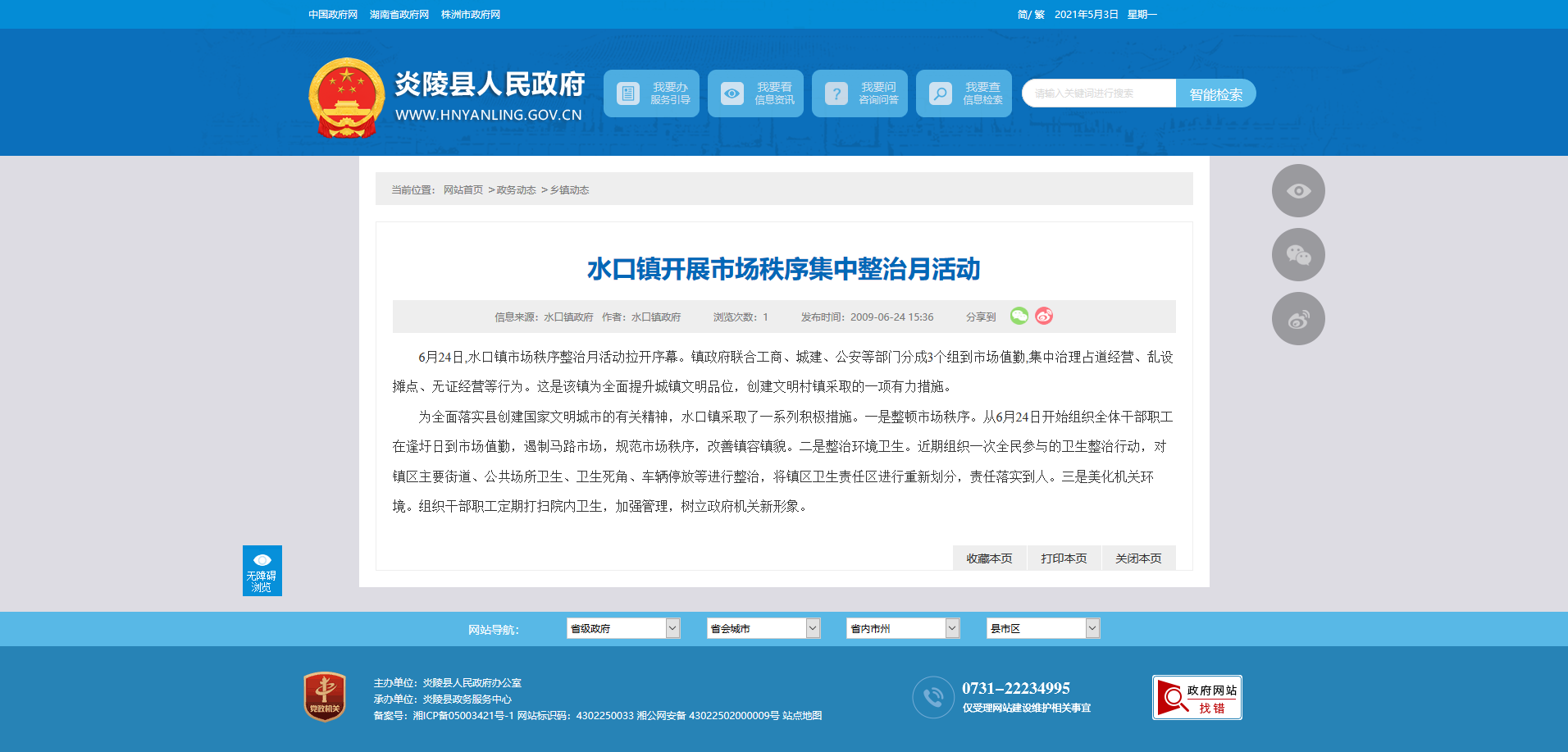 为全面落实县创建国家文明城市的有关精神,水口镇采取了一系列积极措施。一是整顿市场秩序。从6月24日开始组织全体干部职工在逢圩日到市场值勤,遏制马路市场,规范市场秩序,改善镇容镇貌。二是整治环境卫生。近期组织一次全民参与的卫生整治行动,对镇区主要街道、公共场所卫生、卫生死角、车辆停放等进行整治,将镇区卫生责任区进行重新划分,责任落实到人。三是美化机关环境。组织干部职工定期打扫院内卫生,加强管理,树立政府机关新形象。