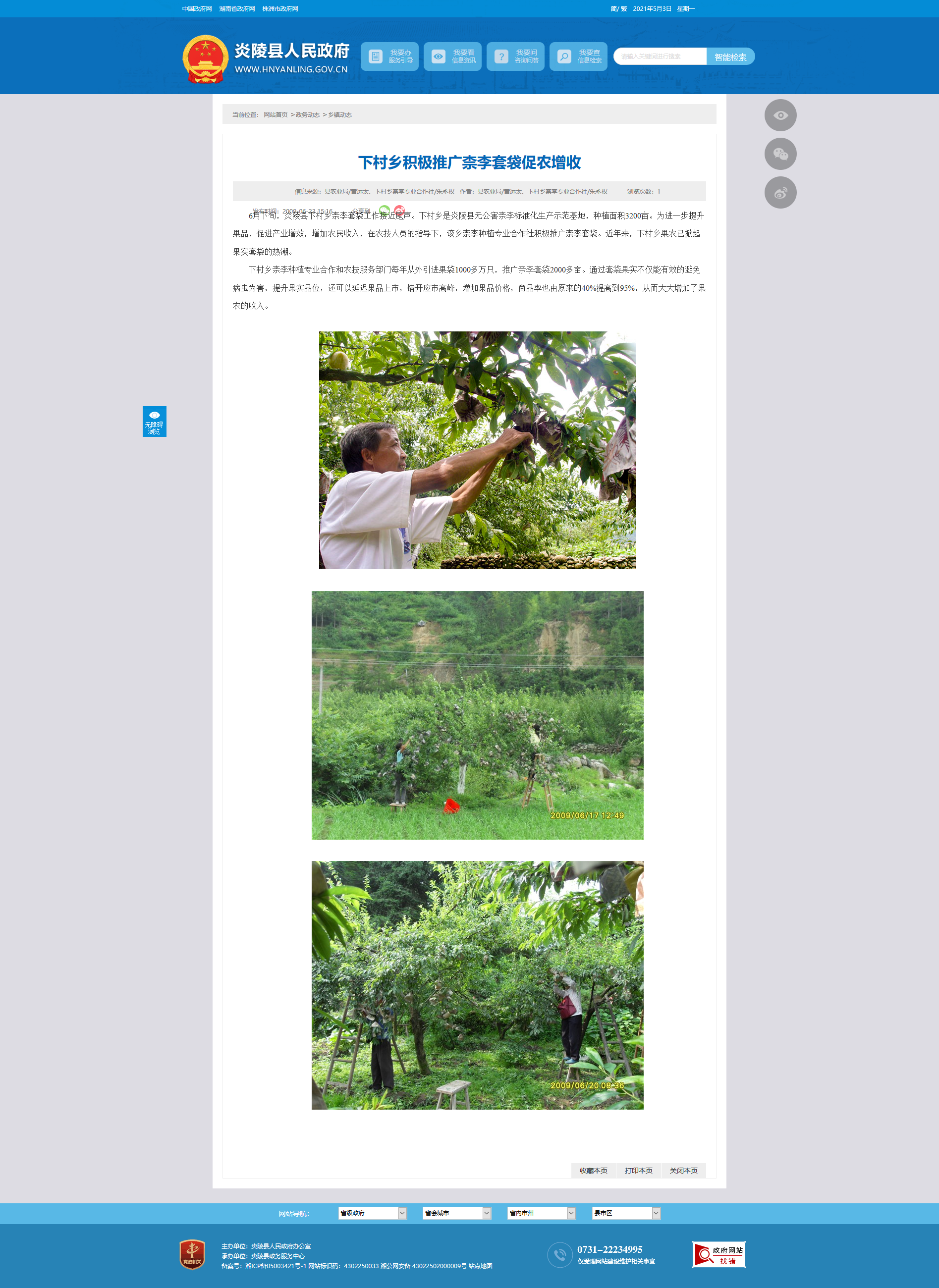 下村乡柰李种植专业合作和农技服务部门每年从外引进果袋1000多万只,推广柰李套袋2000多亩。通过套袋果实不仅能有效的避免病虫为害,提升果实品位,还可以延迟果品上市,错开应市高峰,增加果品价格,商品率也由原来的40%提高到95%,从而大大增加了果农的收入。