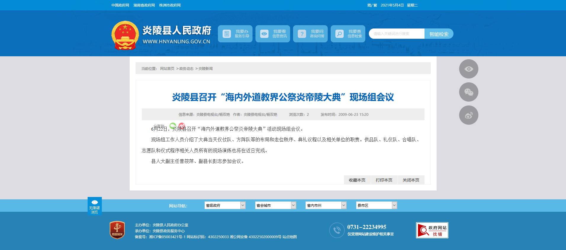 时间:2009-06-23 15:20:00 来源: 炎陵县人民政府 来源截图