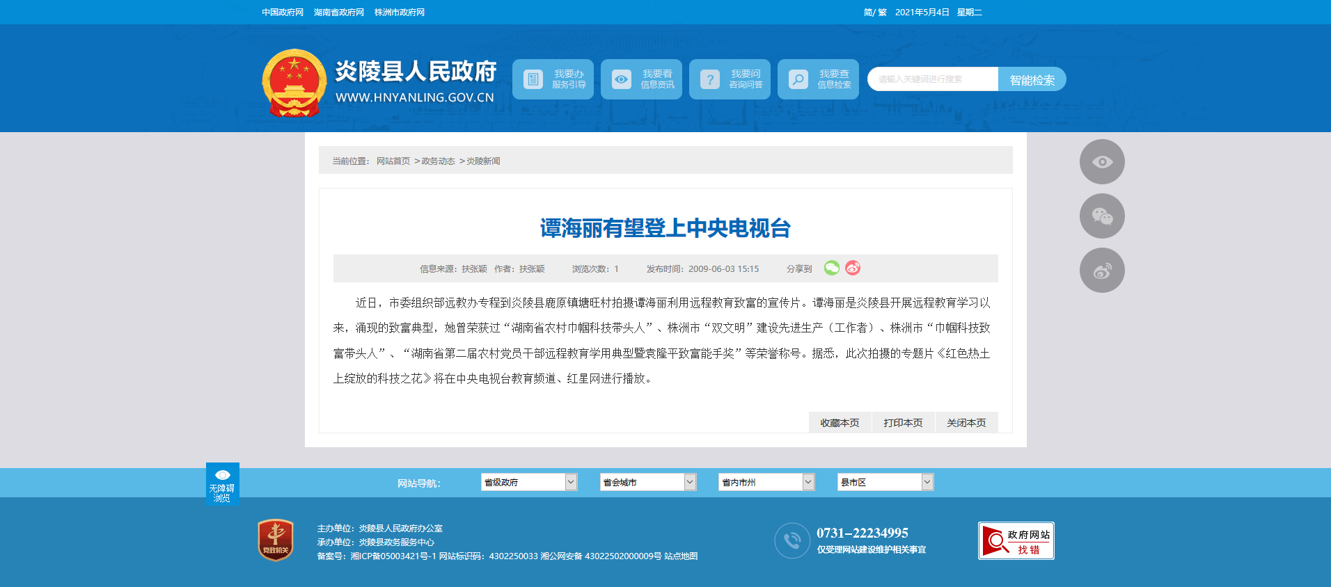 时间:2009-06-03 15:15:00 来源: 炎陵县人民政府 来源截图