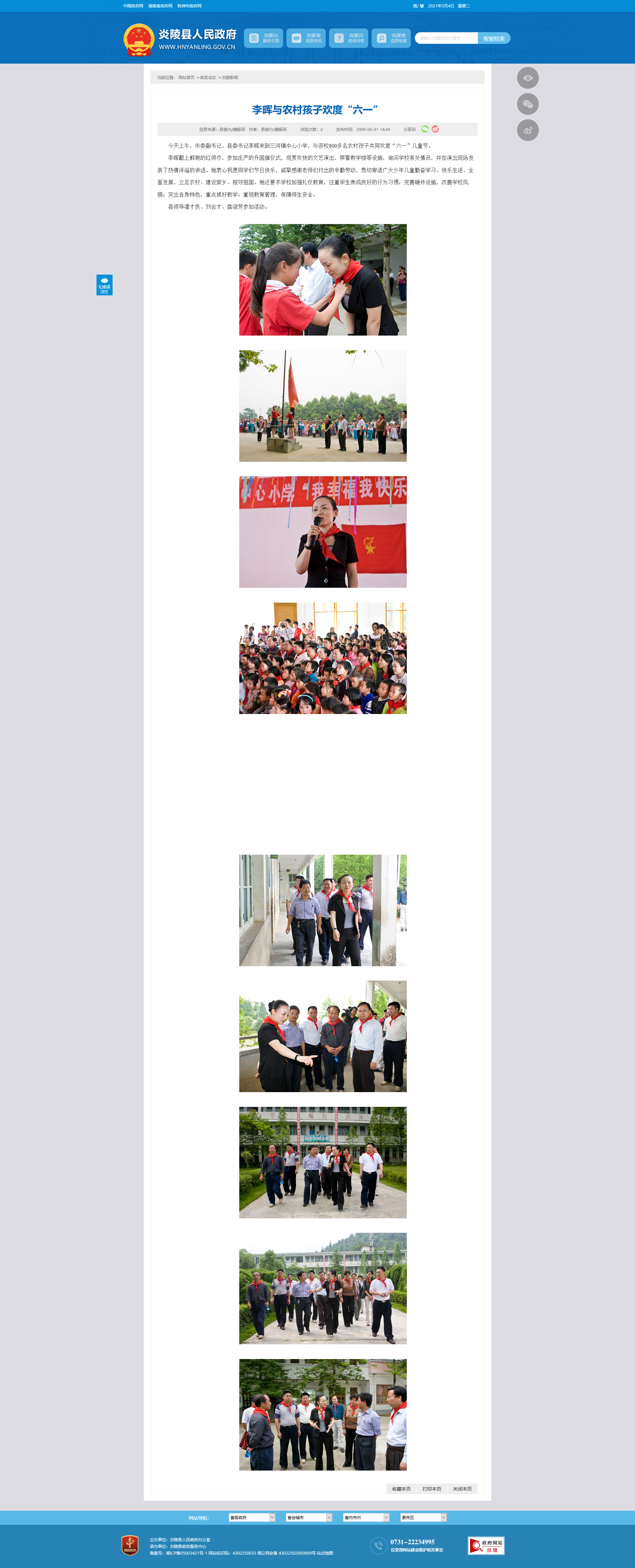 今天上午,市委副书记、县委书记李晖来到三河镇中心小学,与该校800多名农村孩子共同欢度“六一”儿童节。