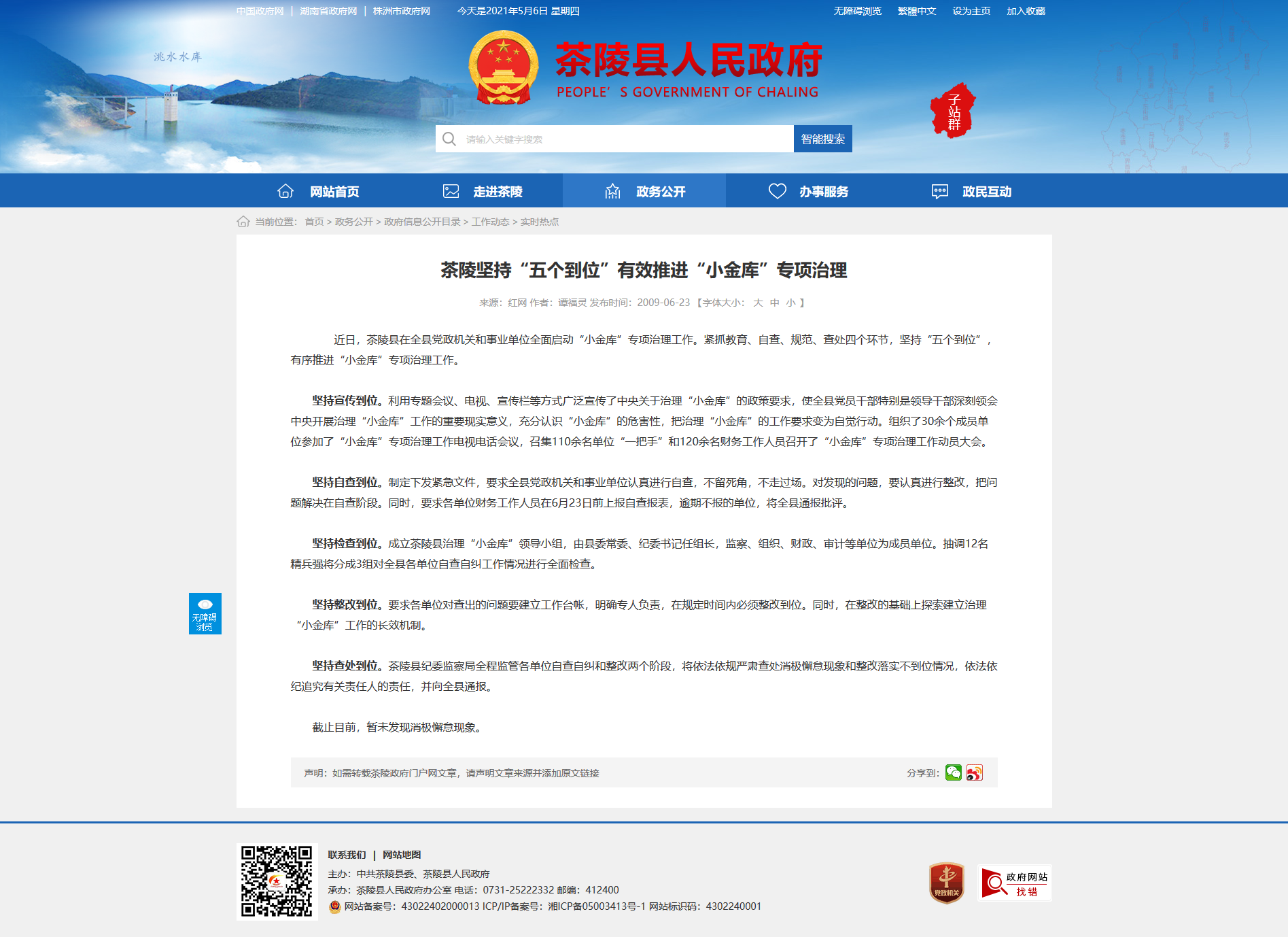 近日,茶陵县在全县党政机关和事业单位全面启动“小金库”专项治理工作。紧抓教育、自查、规范、查处四个环节,坚持“五个到位”,有序推进“小金库”专项治理工作。