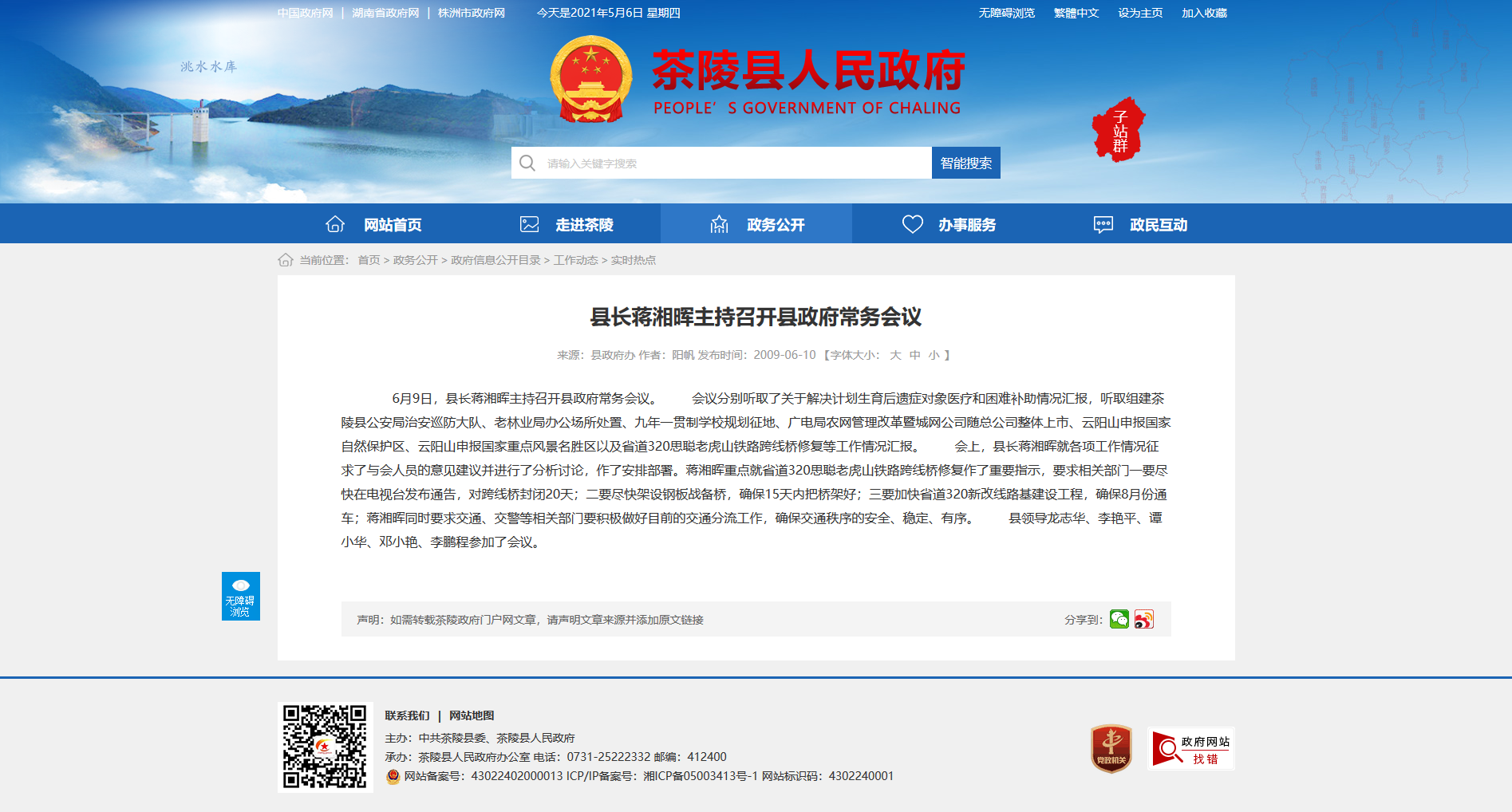 6月9日,县长蒋湘晖主持召开县政府常务会议。 会议分别听取了关于解决计划生育后遗症对象医疗和困难补助情况汇报,听取组建茶陵县公安局治安巡防大队、老林业局办公场所处置、九年一贯制学校规划征地、广电局农网管理改革暨城网公司随总公司整体上市、云阳山申报国家自然保护区、云阳山申报国家重点风景名胜区以及省道320思聪老虎山铁路跨线桥修复等工作情况汇报。 会上,县长蒋湘晖就各项工作情况征求了与会人员的意见建议并进行了分析讨论,作了安排部署。蒋湘晖重点就省道320思聪老虎山铁路跨线桥修复作了重要指示,要求相关部门一要尽快在电视台发布通告,对跨线桥封闭20天;二要尽快架设钢板战备桥,确保15天内把桥架好;三要加快省道320新改线路基建设工程,确保8月份通车;蒋湘晖同时要求交通、交警等相关部门要积极做好目前的交通分流工作,确保交通秩序的安全、稳定、有序。 县领导龙志华、李艳平、谭小华、邓小艳、李鹏程参加了会议。