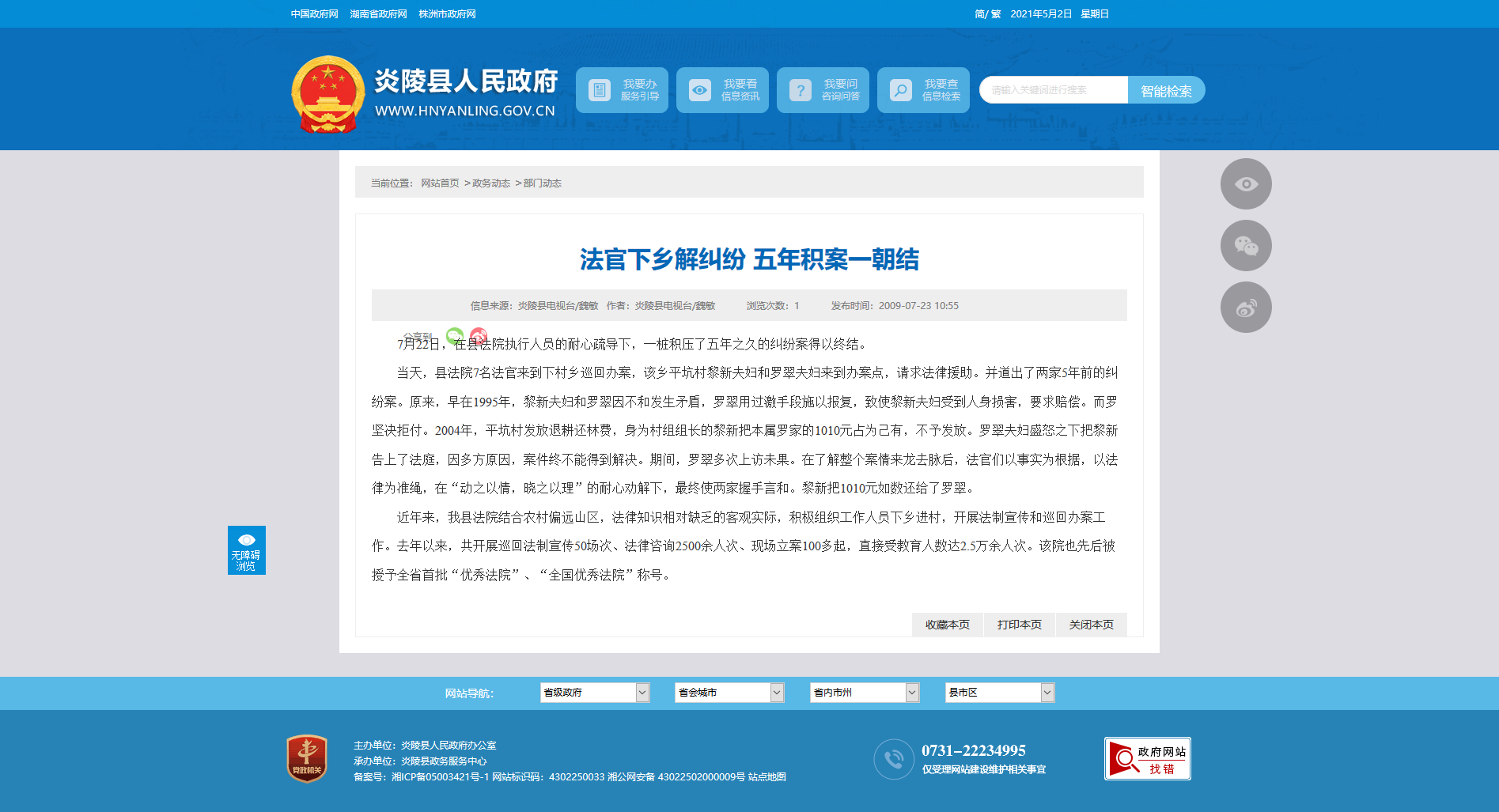 近年来,我县法院结合农村偏远山区,法律知识相对缺乏的客观实际,积极组织工作人员下乡进村,开展法制宣传和巡回办案工作。去年以来,共开展巡回法制宣传50场次、法律咨询2500余人次、现场立案100多起,直接受教育人数达2.5万余人次。该院也先后被授予全省首批“优秀法院”、“全国优秀法院”称号。