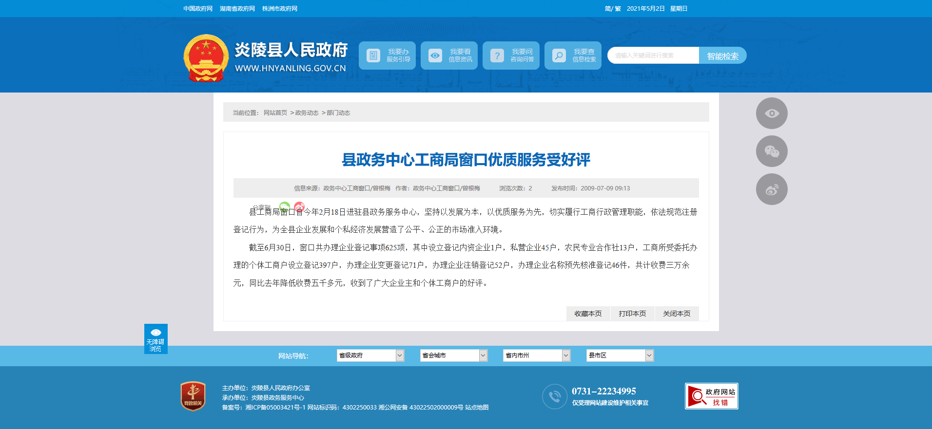 县工商局窗口自今年2月18日进驻县政务服务中心,坚持以发展为本,以优质服务为先,切实履行工商行政管理职能,依法规范注册登记行为,为全县企业发展和个私经济发展营造了公平、公正的市场准入环境。
