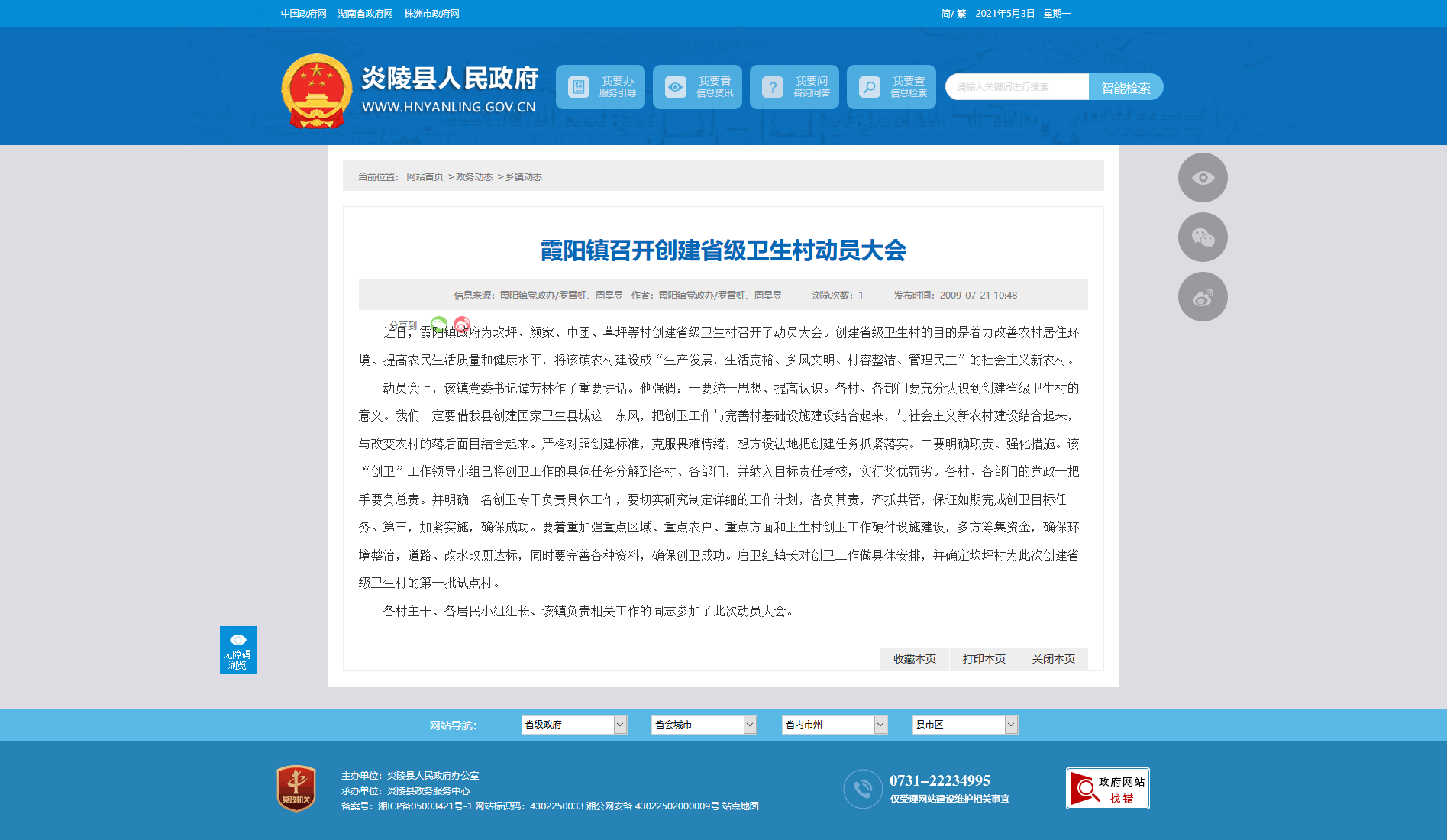 近日,霞阳镇政府为坎坪、颜家、中团、草坪等村创建省级卫生村召开了动员大会。创建省级卫生村的目的是着力改善农村居住环境、提高农民生活质量和健康水平,将该镇农村建设成“生产发展,生活宽裕、乡风文明、村容整洁、管理民主”的社会主义新农村。