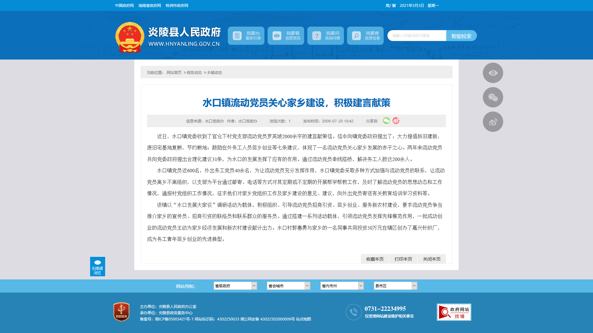 近日,水口镇党委收到了官仓下村党支部流动党员罗英坡2000余字的建言献策信。信中向镇党委政府提出了:大力提倡拆旧建新,废旧宅基地复耕,节约耕地;鼓励在外务工人员回乡创业等七条建议,体现了一名流动党员关心家乡发展的赤子之心。两年来流动党员共向党委政府提出合理化建议31条,为水口的发展发挥了应有的作用。通过流动党员牵线搭桥,解决务工人数达200余人。