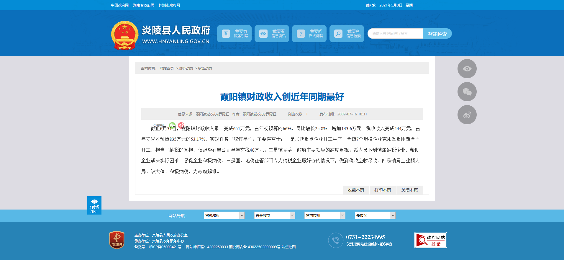 截止6月31日,霞阳镇财政收入累计完成651万元,占年初预算的66%,同比增长25.8%,增加133.6万元。税收收入完成444万元,占年初税收预算835万元的53.17%,实现任务“双过半”。主要得益于:一是加快重点企业开工生产,全镇7个规模企业克服重重困难全面开工,担当了纳税的重担,仅冠隆石墨公司半年交税46万元。二是镇党委、政府主要领导的高度重视。派人员下到镇属纳税企业,帮助企业解决实际困难,督促企业积极纳税。三是国、地税征管部门专为纳税企业服好务的情况下,做到税收应收尽收。四是镇属企业顾大局、识大体、积极纳税,为政府解难。