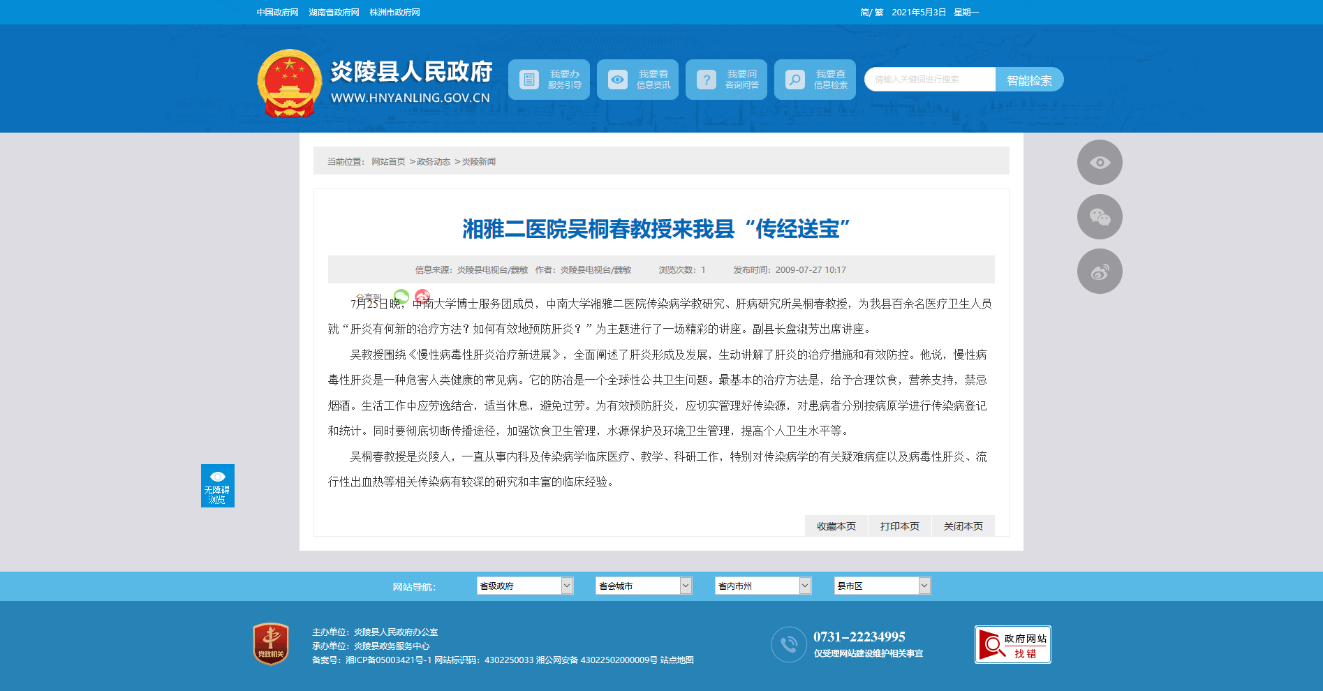 吴桐春教授是炎陵人,一直从事内科及传染病学临床医疗、教学、科研工作,特别对传染病学的有关疑难病症以及病毒性肝炎、流行性出血热等相关传染病有较深的研究和丰富的临床经验。