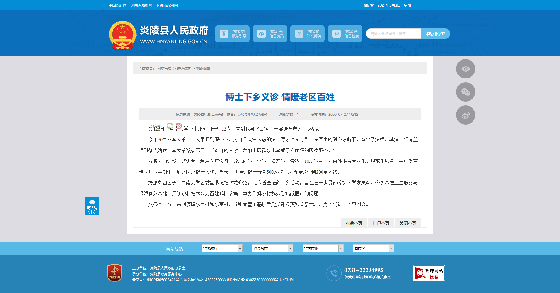 据服务团团长、中南大学团委副书记杨飞龙介绍,此次送医送药下乡活动,旨在进一步贯彻落实科学发展观,夯实基层卫生服务与保障体系基础,用知识和技术多为百姓解除病痛,努力缓解农村群众看病就医难的问题。