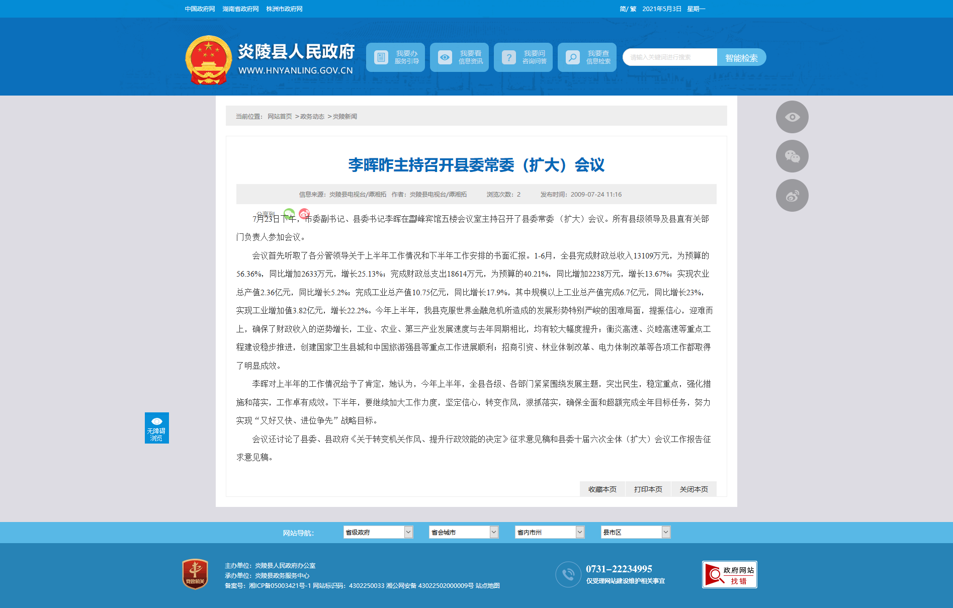 7月23日下午,市委副书记、县委书记李晖在酃峰宾馆五楼会议室主持召开了县委常委 (扩大)会议。所有县级领导及县直有关部门负责人参加会议。