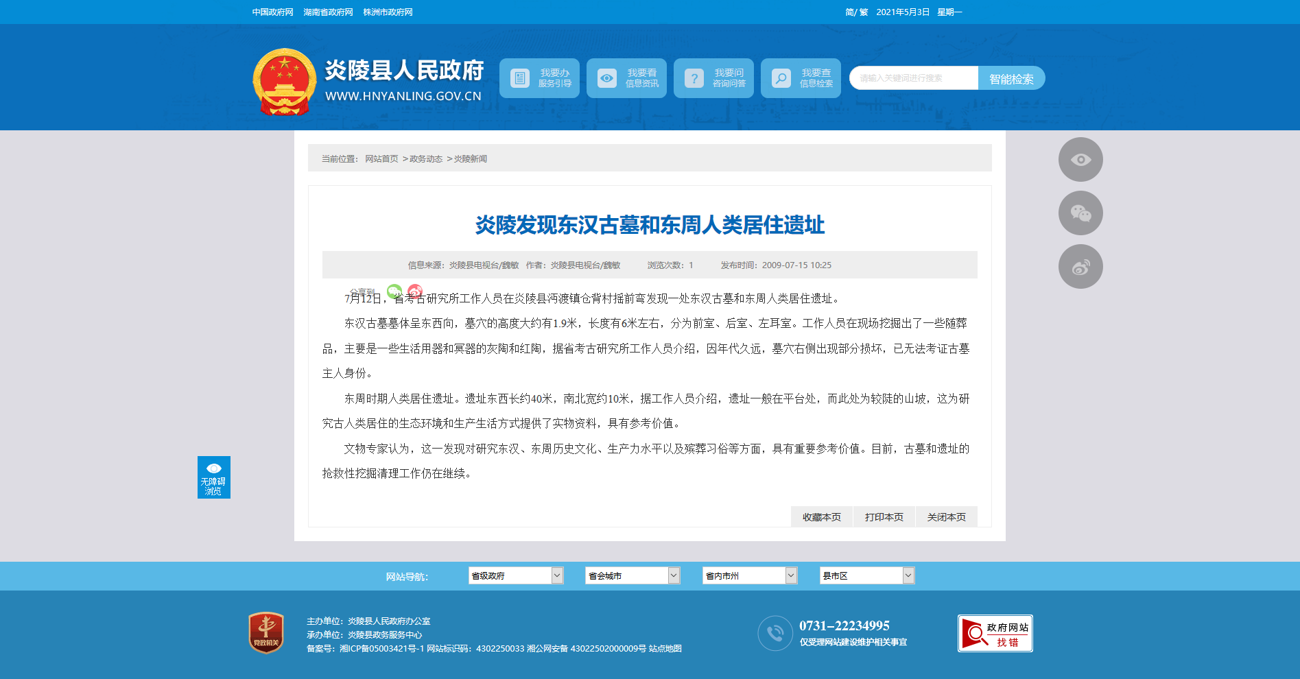 7月12日,省考古研究所工作人员在炎陵县沔渡镇仓背村摇前弯发现一处东汉古墓和东周人类居住遗址。