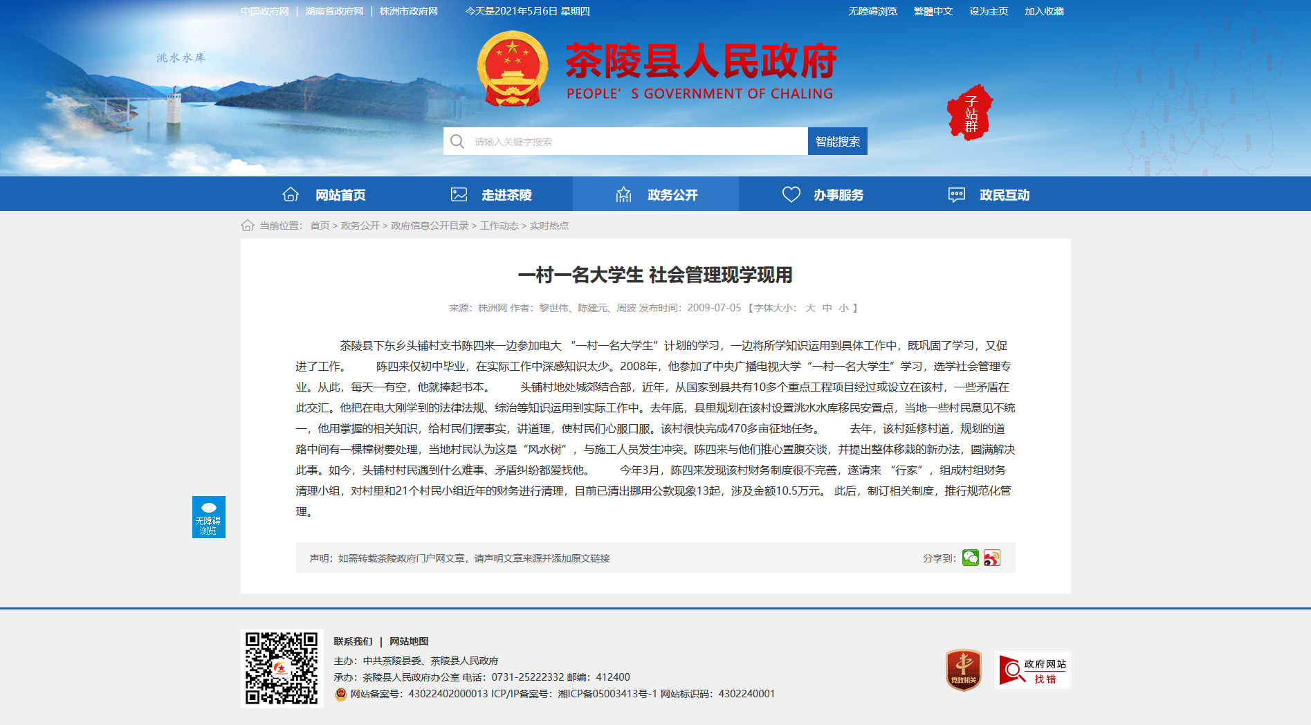茶陵县下东乡头铺村支书陈四来一边参加电大 “一村一名大学生”计划的学习,一边将所学知识运用到具体工作中,既巩固了学习,又促进了工作。 陈四来仅初中毕业,在实际工作中深感知识太少。2008年,他参加了中央广播电视大学“一村一名大学生”学习,选学社会管理专业。从此,每天一有空,他就捧起书本。 头铺村地处城郊结合部,近年,从国家到县共有10多个重点工程项目经过或设立在该村,一些矛盾在此交汇。他把在电大刚学到的法律法规、综治等知识运用到实际工作中。去年底,县里规划在该村设置洮水水库移民安置点,当地一些村民意见不统一,他用掌握的相关知识,给村民们摆事实,讲道理,使村民们心服口服。该村很快完成470多亩征地任务。 去年,该村延修村道,规划的道路中间有一棵樟树要处理,当地村民认为这是“风水树”,与施工人员发生冲突。陈四来与他们推心置腹交谈,并提出整体移栽的新办法,圆满解决此事。如今,头铺村村民遇到什么难事、矛盾纠纷都爱找他。 今年3月,陈四来发现该村财务制度很不完善,遂请来 “行家”,组成村组财务清理小组,对村里和21个村民小组近年的财务进行清理,目前已清出挪用公款现象13起,涉及金额10.5万元。 此后,制订相关制度,推行规范化管理。