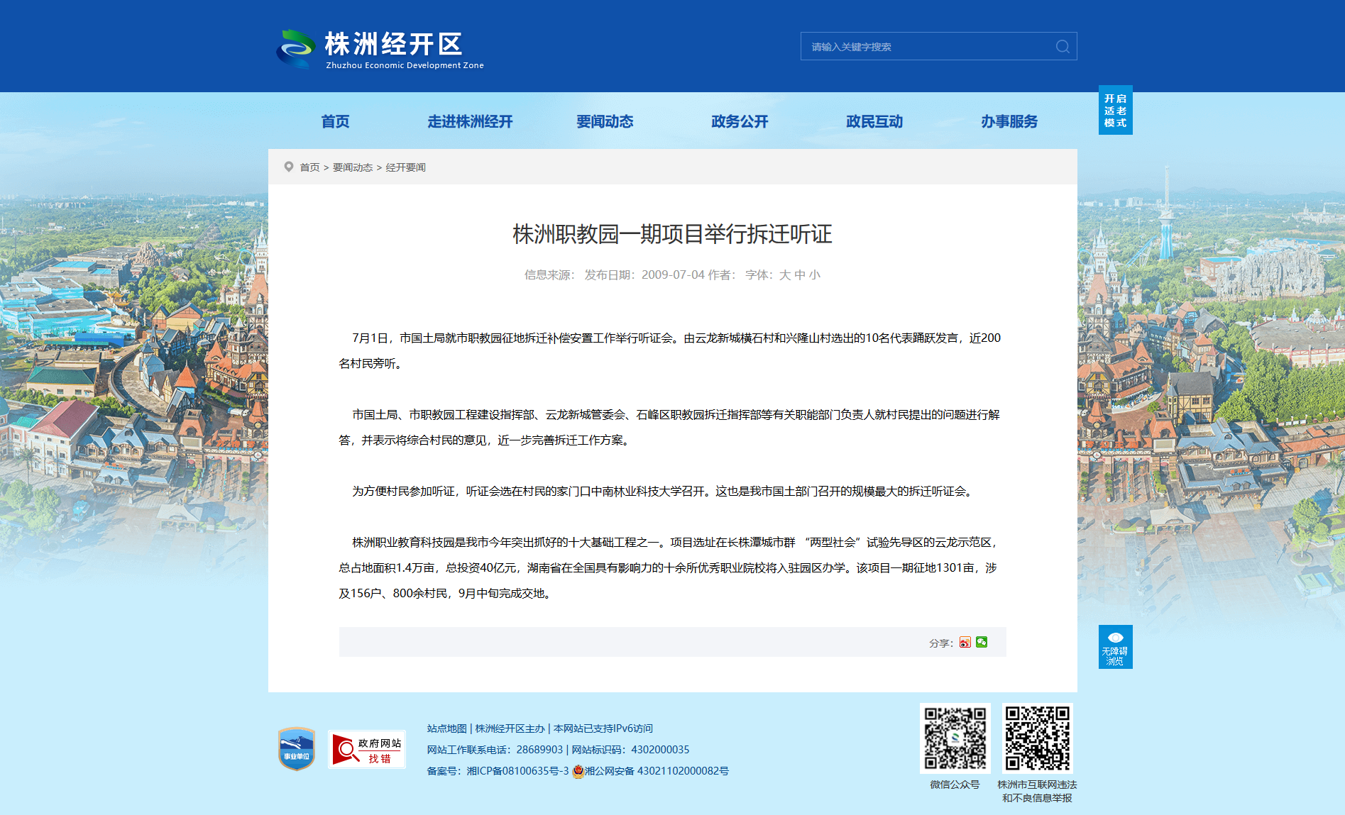 株洲职业教育科技园是我市今年突出抓好的十大基础工程之一。项目选址在长株潭城市群 “两型社会”试验先导区的云龙示范区,总占地面积1.4万亩,总投资40亿元,湖南省在全国具有影响力的十余所优秀职业院校将入驻园区办学。该项目一期征地1301亩,涉及156户、800余村民,9月中旬完成交地。