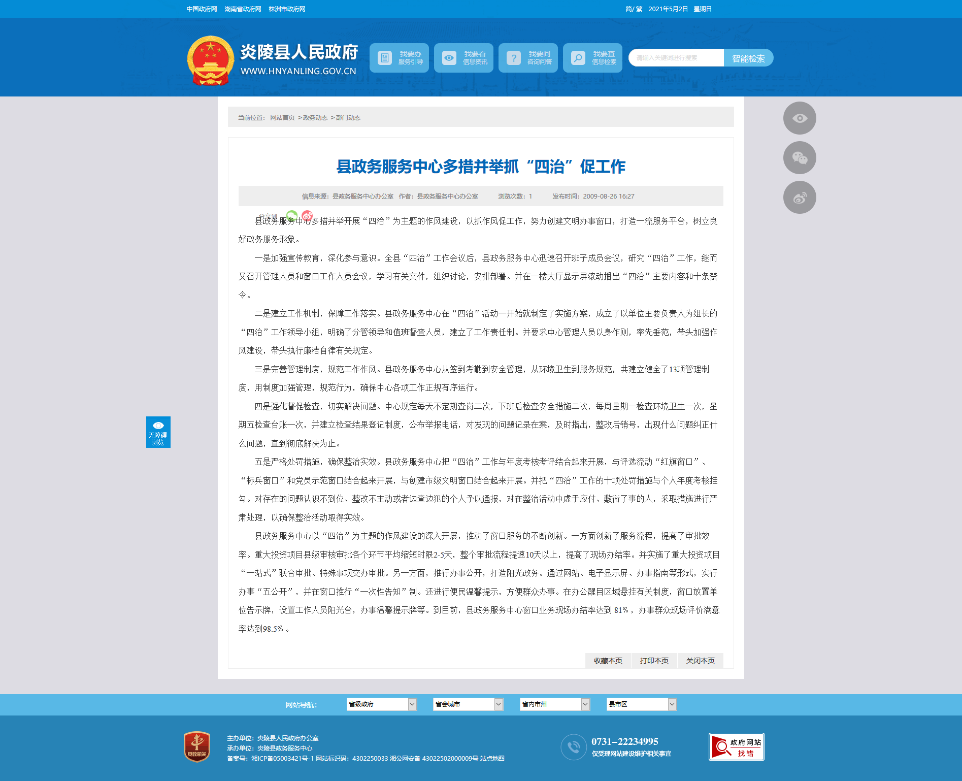 县政务服务中心多措并举开展“四治”为主题的作风建设,以抓作风促工作,努力创建文明办事窗口,打造一流服务平台,树立良好政务服务形象。
