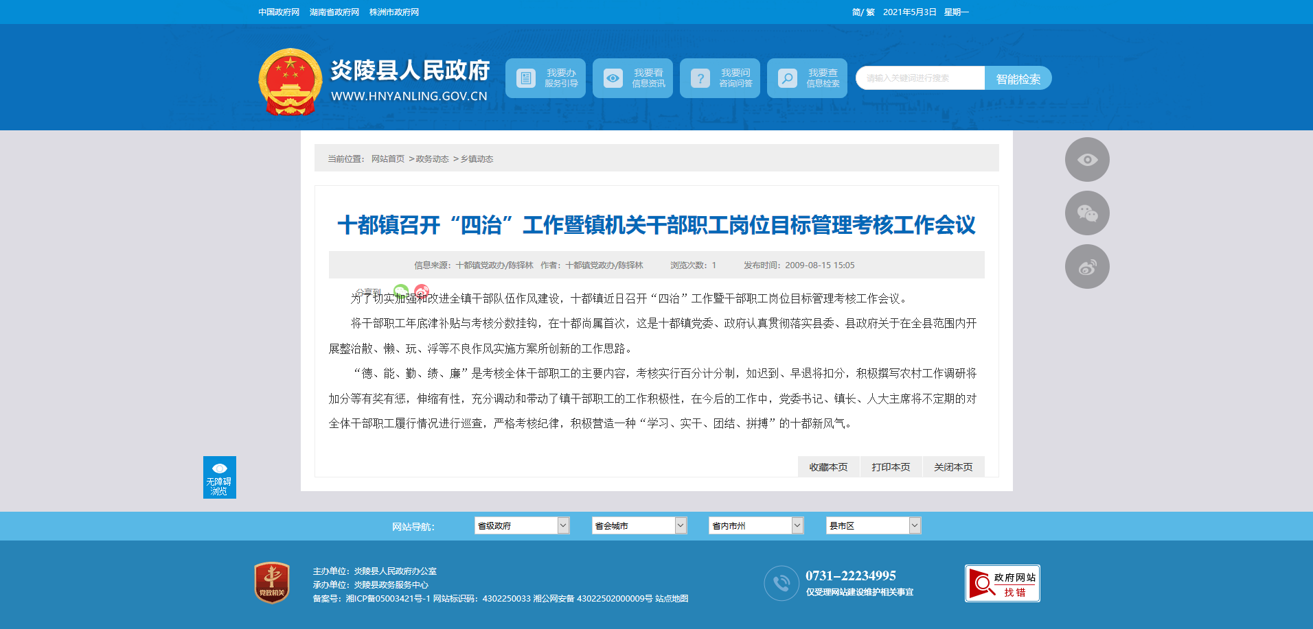 “德、能、勤、绩、廉”是考核全体干部职工的主要内容,考核实行百分计分制,如迟到、早退将扣分,积极撰写农村工作调研将加分等有奖有惩,伸缩有性,充分调动和带动了镇干部职工的工作积极性,在今后的工作中,党委书记、镇长、人大主席将不定期的对全体干部职工履行情况进行巡查,严格考核纪律,积极营造一种“学习、实干、团结、拼搏”的十都新风气。