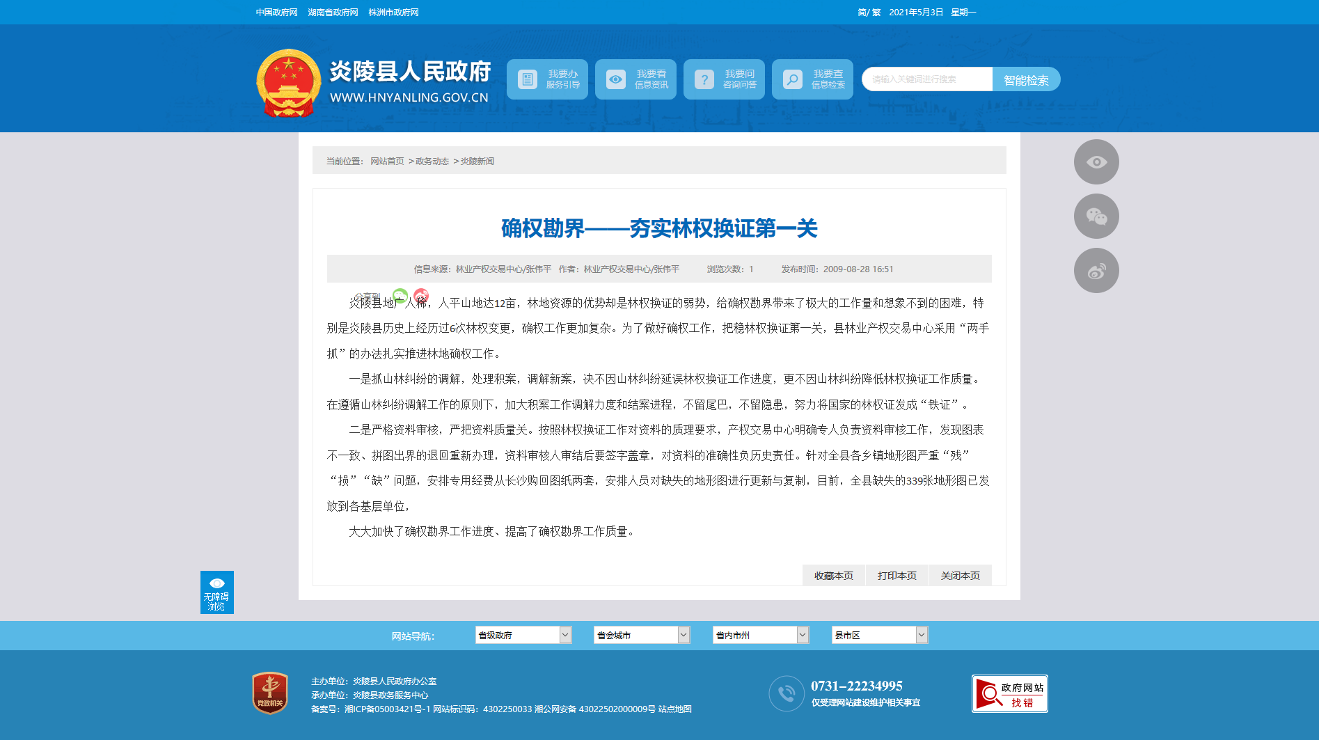 炎陵县地广人稀,人平山地达12亩,林地资源的优势却是林权换证的弱势,给确权勘界带来了极大的工作量和想象不到的困难,特别是炎陵县历史上经历过6次林权变更,确权工作更加复杂。为了做好确权工作,把稳林权换证第一关,县林业产权交易中心采用“两手抓”的办法扎实推进林地确权工作。