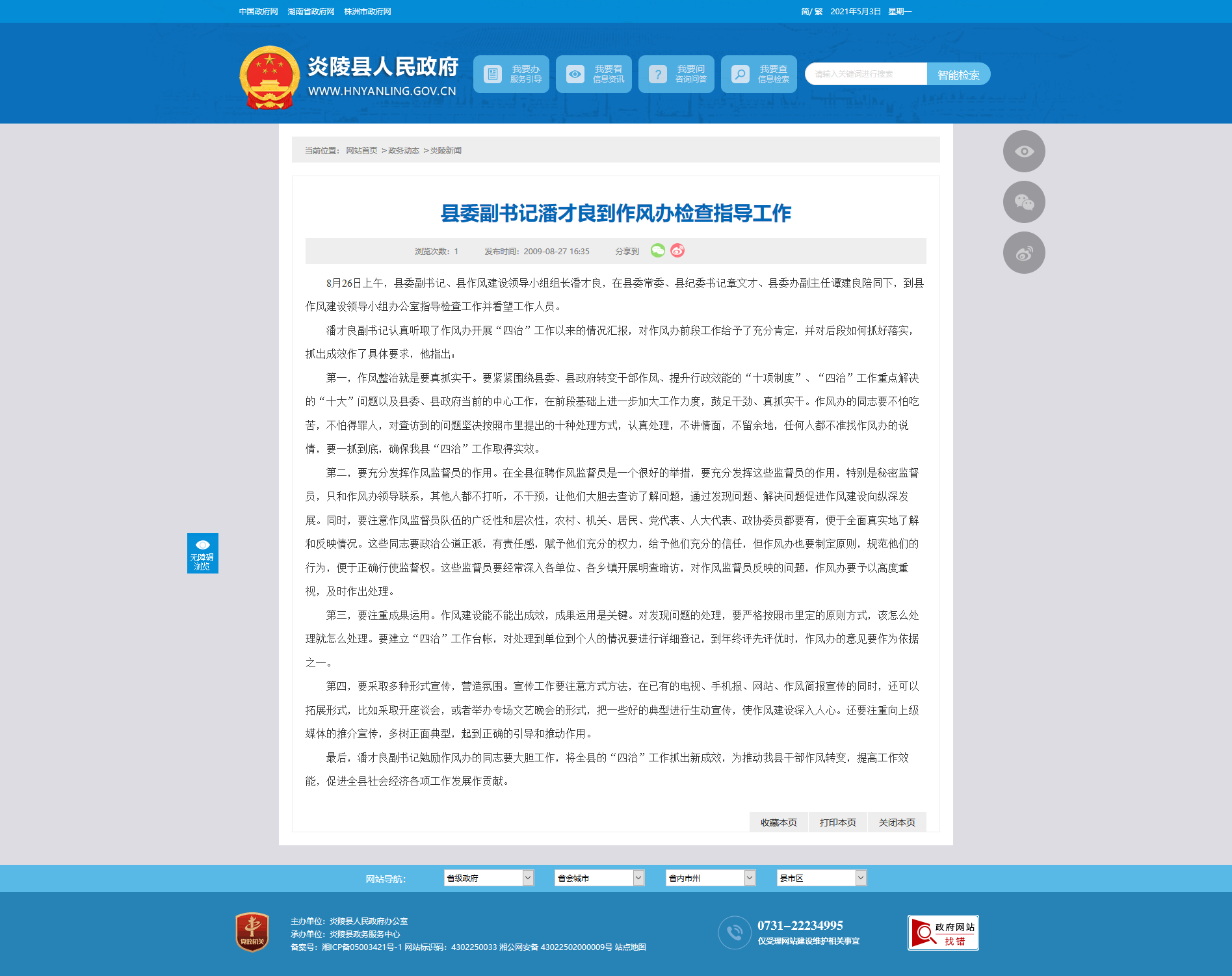 最后,潘才良副书记勉励作风办的同志要大胆工作,将全县的“四治”工作抓出新成效,为推动我县干部作风转变,提高工作效能,促进全县社会经济各项工作发展作贡献。