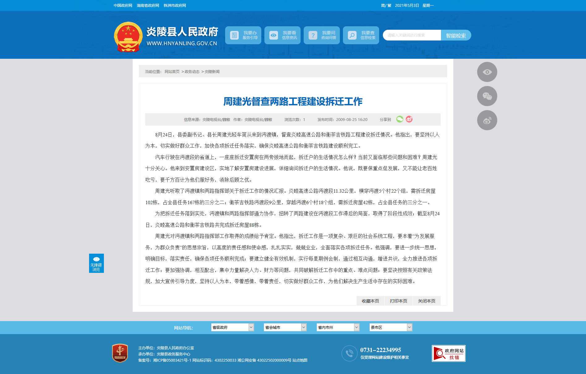8月24日,县委副书记、县长周建光轻车简从来到沔渡镇,督查炎睦高速公路和衡茶吉铁路工程建设拆迁情况。他指出,要坚持以人为本,切实做好群众工作,加快各项拆迁任务落实,确保炎睦高速公路和衡茶吉铁路建设顺利完工。