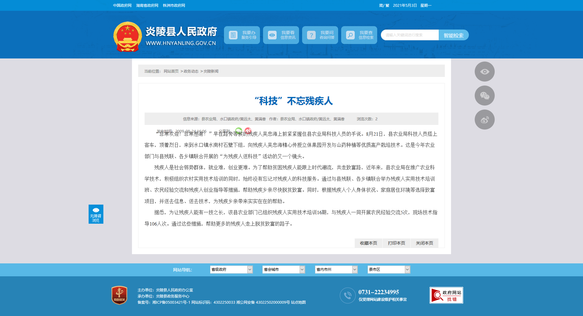 残疾人是社会弱势群体,就业难,创业更难。为了帮助贫困残疾人能跟上时代潮流,共走致富路,近年来,县农业局在推广农业科学技术,积极组织农村实用技术培训的同时,始终没有忘记对残疾人的科技服务。通过与县残联、各乡镇联合举办残疾人实用技术培训班、农民经验交流和残疾人创业指导等措施,帮助残疾乡亲尽快脱贫致富。同时,根据残疾人个人身体状况、家庭居住环境等选择致富项目,并送去信息、送去技术,为残疾乡亲带来实实在在的帮助。