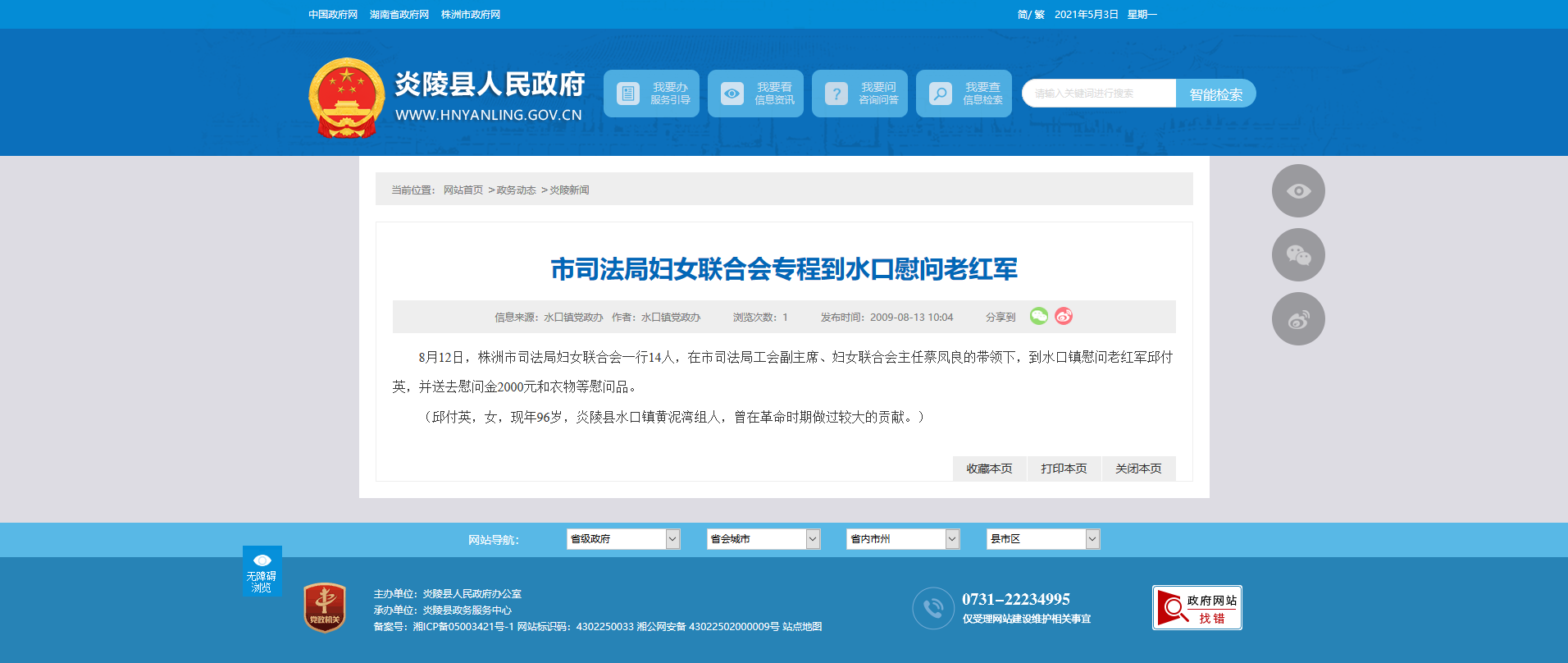 时间:2009-08-13 10:04:00 来源: 炎陵县人民政府 来源截图