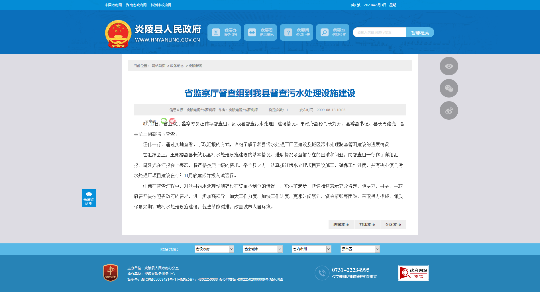 在汇报会上,王衡酃副县长就我县污水处理设施建设的基本情况、进度情况及当前存在的困难和问题,向督查组一行作了详细汇报。周建光在汇报会上表态,将严格按照上级的要求,举全县之力,认真抓好污水处理项目建设施工,确保工作进度,并有决心使县污水处理厂项目建设在今年11月底建成并投入试运行。
