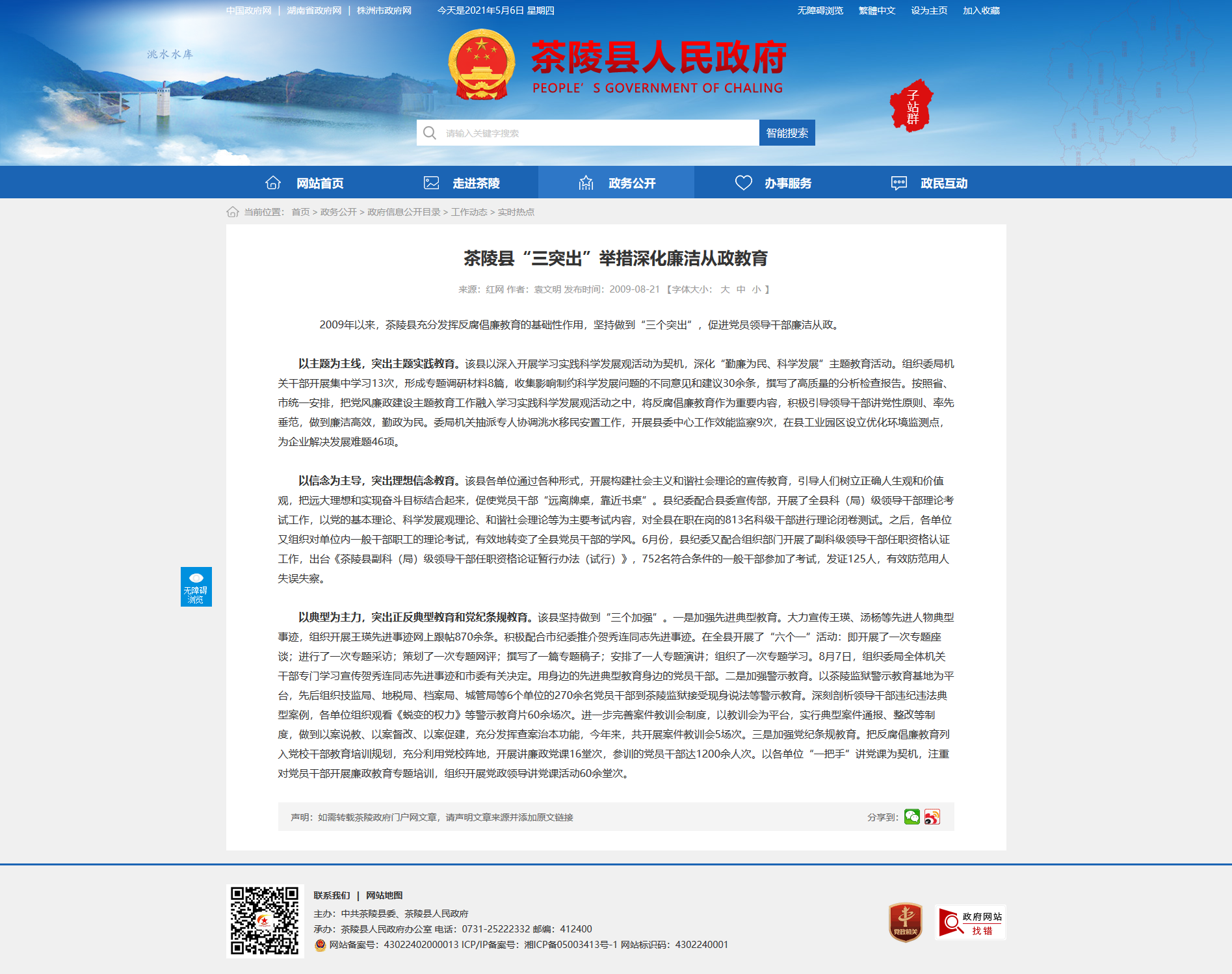 2009年以来,茶陵县充分发挥反腐倡廉教育的基础性作用,坚持做到“三个突出”,促进党员领导干部廉洁从政。