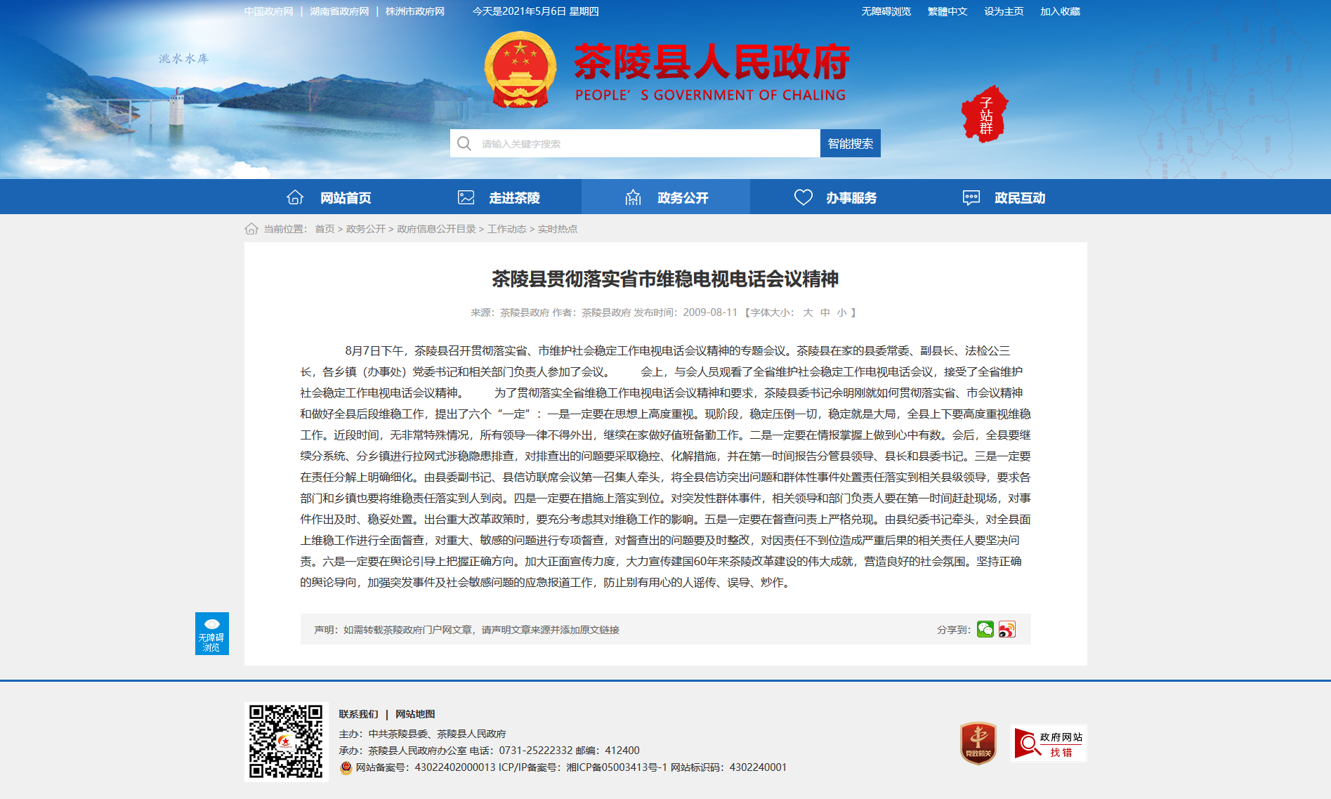 8月7日下午,茶陵县召开贯彻落实省、市维护社会稳定工作电视电话会议精神的专题会议。茶陵县在家的县委常委、副县长、法检公三长,各乡镇(办事处)党委书记和相关部门负责人参加了会议。 会上,与会人员观看了全省维护社会稳定工作电视电话会议,接受了全省维护社会稳定工作电视电话会议精神。 为了贯彻落实全省维稳工作电视电话会议精神和要求,茶陵县委书记余明刚就如何贯彻落实省、市会议精神和做好全县后段维稳工作,提出了六个“一定”:一是一定要在思想上高度重视。现阶段,稳定压倒一切,稳定就是大局,全县上下要高度重视维稳工作。近段时间,无非常特殊情况,所有领导一律不得外出,继续在家做好值班备勤工作。二是一定要在情报掌握上做到心中有数。会后,全县要继续分系统、分乡镇进行拉网式涉稳隐患排查,对排查出的问题要采取稳控、化解措施,并在第一时间报告分管县领导、县长和县委书记。三是一定要在责任分解上明确细化。由县委副书记、县信访联席会议第一召集人牵头,将全县信访突出问题和群体性事件处置责任落实到相关县级领导,要求各部门和乡镇也要将维稳责任落实到人到岗。四是一定要在措施上落实到位。对突发性群体事件,相关领导和部门负责人要在第一时间赶赴现场,对事件作出及时、稳妥处置。出台重大改革政策时,要充分考虑其对维稳工作的影响。五是一定要在督查问责上严格兑现。由县纪委书记牵头,对全县面上维稳工作进行全面督查,对重大、敏感的问题进行专项督查,对督查出的问题要及时整改,对因责任不到位造成严重后果的相关责任人要坚决问责。六是一定要在舆论引导上把握正确方向。加大正面宣传力度,大力宣传建国60年来茶陵改革建设的伟大成就,营造良好的社会氛围。坚持正确的舆论导向,加强突发事件及社会敏感问题的应急报道工作,防止别有用心的人谣传、误导、炒作。