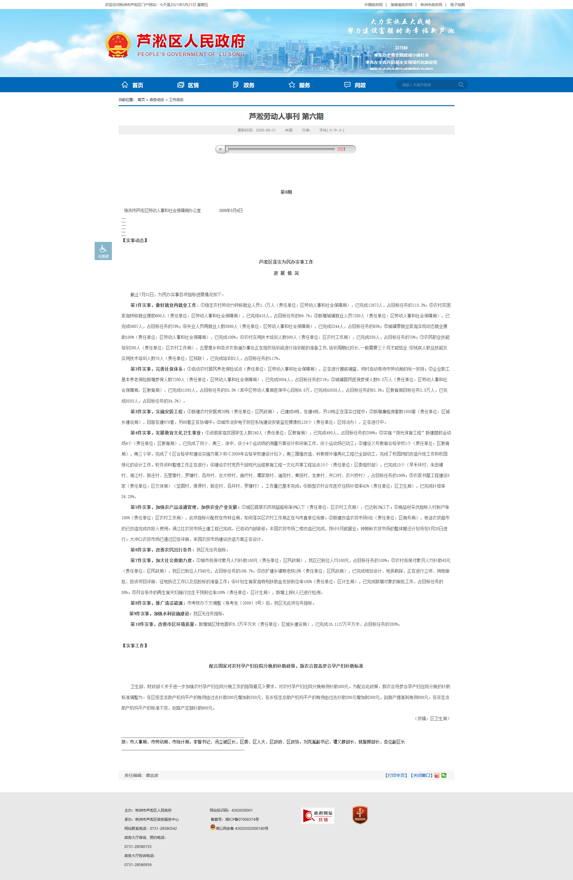 株洲市芦淞区劳动人事和社会保障局办公室 2009年8月4日