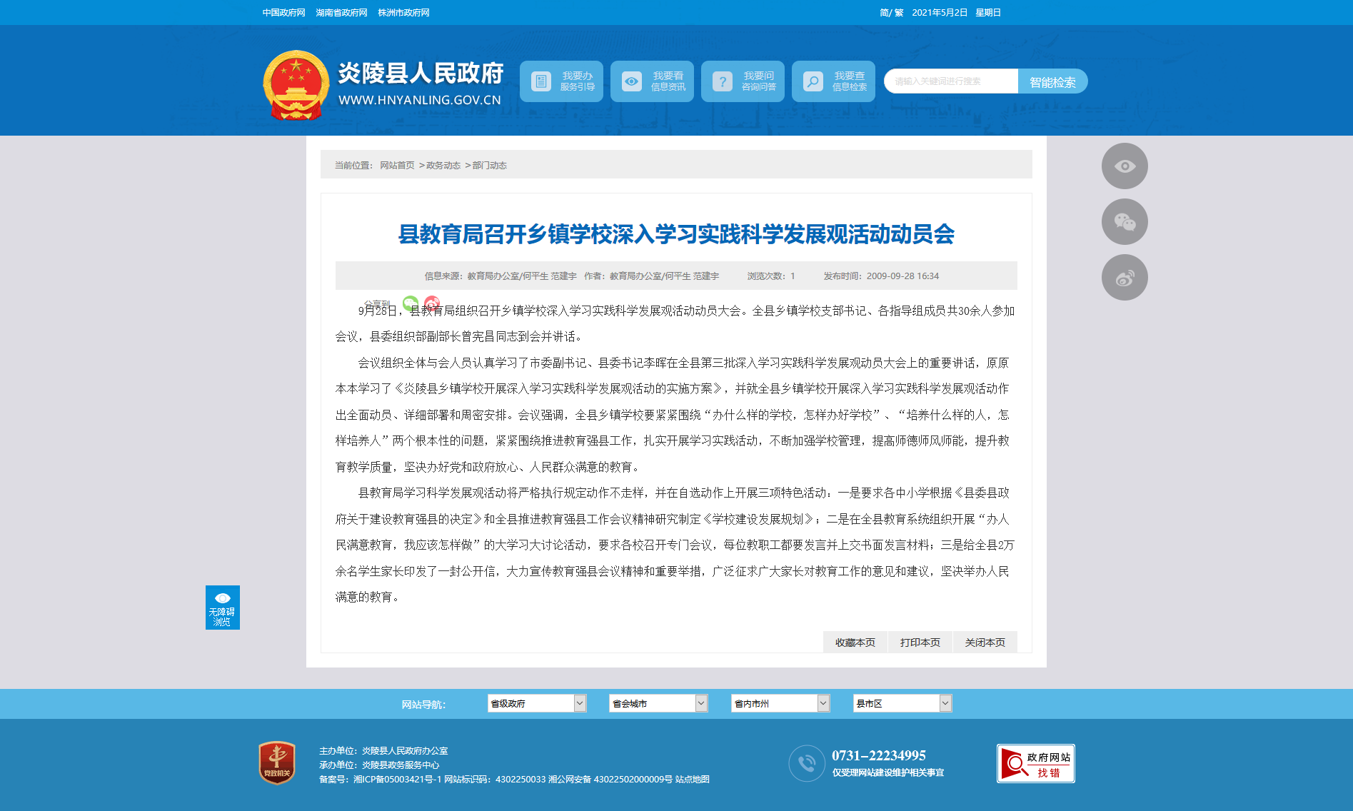 会议组织全体与会人员认真学习了市委副书记、县委书记李晖在全县第三批深入学习实践科学发展观动员大会上的重要讲话,原原本本学习了《炎陵县乡镇学校开展深入学习实践科学发展观活动的实施方案》,并就全县乡镇学校开展深入学习实践科学发展观活动作出全面动员、详细部署和周密安排。会议强调,全县乡镇学校要紧紧围绕“办什么样的学校,怎样办好学校”、“培养什么样的人,怎样培养人”两个根本性的问题,紧紧围绕推进教育强县工作,扎实开展学习实践活动,不断加强学校管理,提高师德师风师能,提升教育教学质量,坚决办好党和政府放心、人民群众满意的教育。