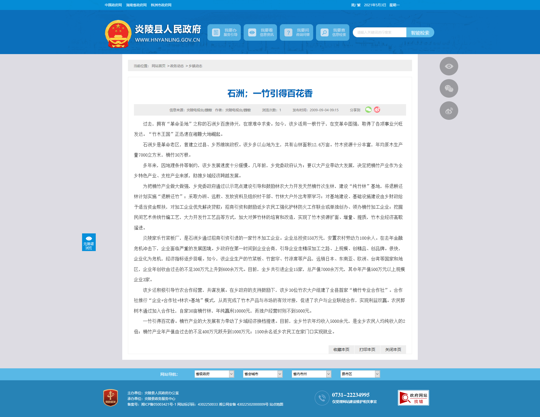 过去,拥有“革命圣地”之称的石洲乡百废待兴,在艰难中求索。如今,该乡活用一根竹子,在变革中图强,取得了各项事业兴旺发达。“竹木王国”正迅速在湘赣大地崛起。