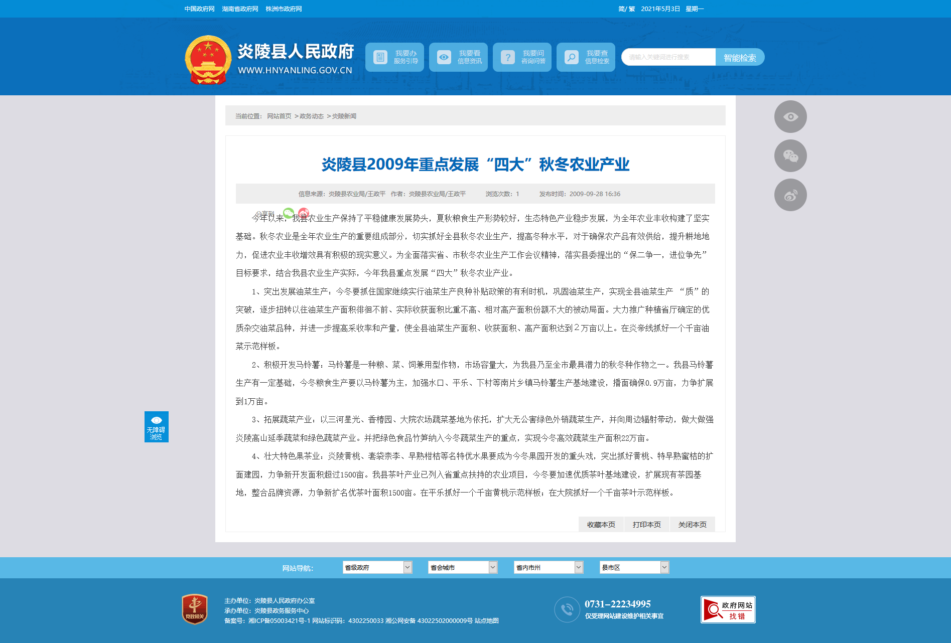 1、突出发展油菜生产:今冬要抓住国家继续实行油菜生产良种补贴政策的有利时机,巩固油菜生产,实现全县油菜生产 “质”的突破,逐步扭转以往油菜生产面积徘徊不前、实际收获面积比重不高、相对高产面积份额不大的被动局面。大力推广种植省厅确定的优质杂交油菜品种,并进一步提高采收率和产量,使全县油菜生产面积、收获面积、高产面积达到2万亩以上。在炎帝线抓好一个千亩油菜示范样板。