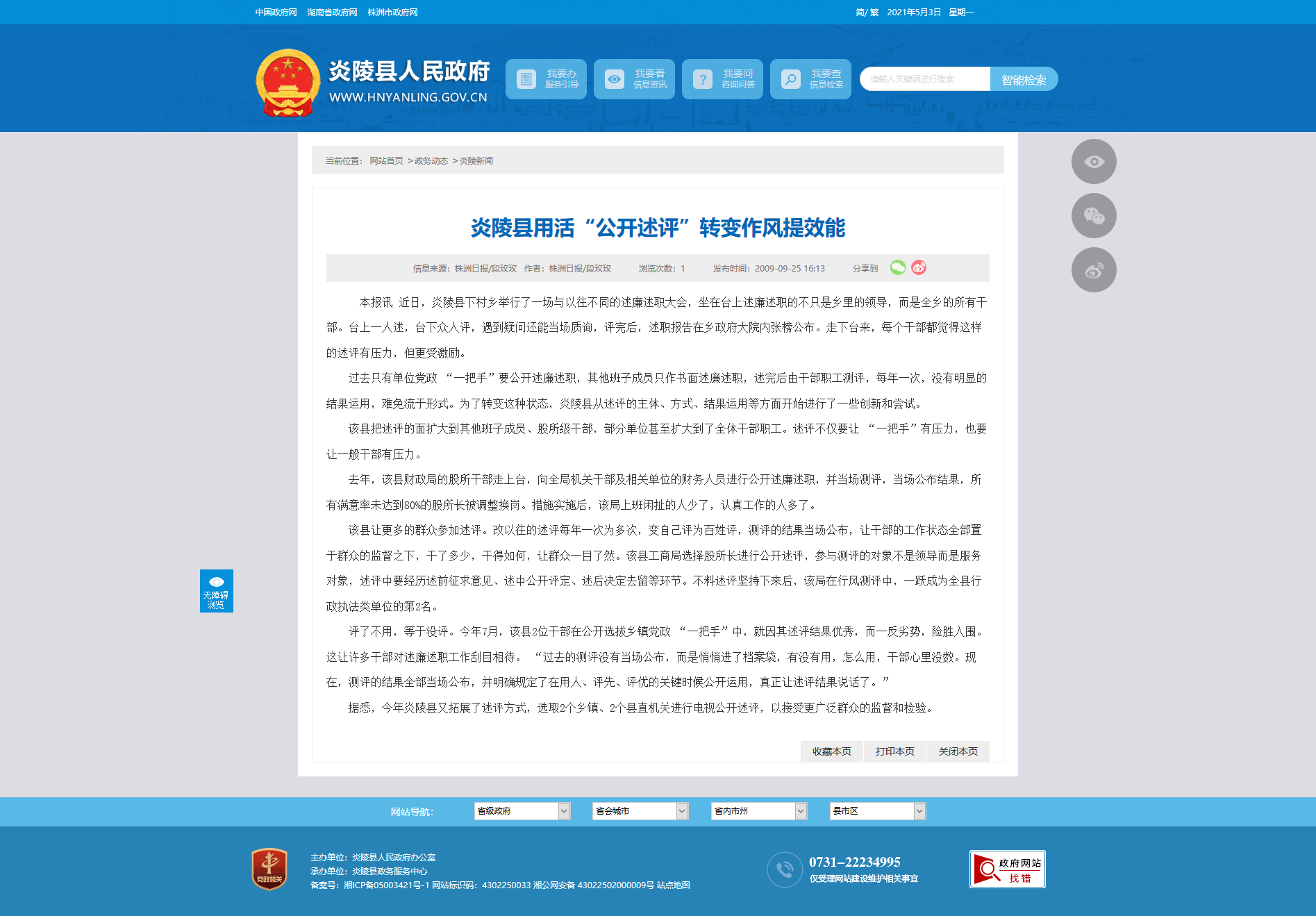 据悉,今年炎陵县又拓展了述评方式,选取2个乡镇、2个县直机关进行电视公开述评,以接受更广泛群众的监督和检验。