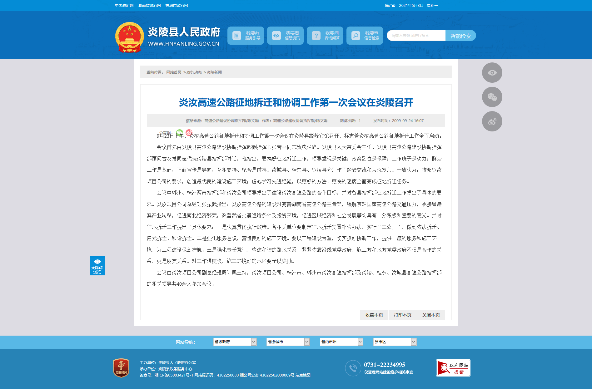 会议由炎汝项目公司副总经理周训凤主持,炎汝项目公司、株洲市、郴州市炎汝高速指挥部及炎陵、桂东、汝城县高速公路指挥部的相关领导共40余人参加会议。