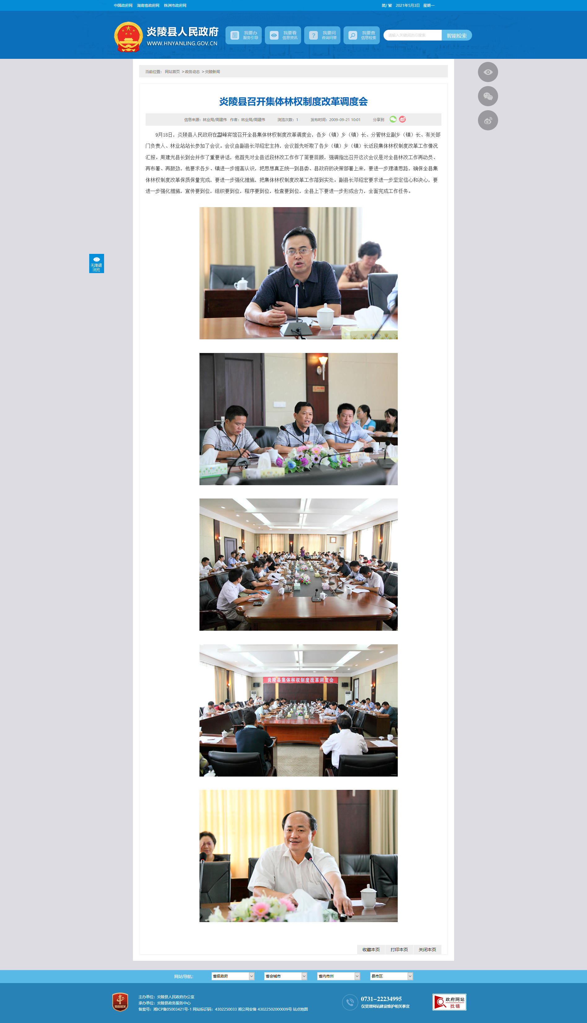 9月18日,炎陵县人民政府在酃峰宾馆召开全县集体林权制度改革调度会,各乡(镇)乡(镇)长、分管林业副乡(镇)长、有关部门负责人、林业站站长参加了会议。会议由副县长邓绍宏主持,会议首先听取了各乡(镇)乡(镇)长近段集体林权制度改革工作情况汇报。周建光县长到会并作了重要讲话,他首先对全县近段林改工作作了简要回顾,强调指出召开这次会议是对全县林改工作再动员、再布署、再鼓劲,他要求各乡、镇进一步提高认识,把思想真正统一到县委、县政府的决策部署上来,要进一步理清思路,确保全县集体林权制度改革保质保量完成,要进一步强化措施,把集体林权制度改革工作落到实处。副县长邓绍宏要求进一步坚定信心和决心,要进一步强化措施,宣传要到位,组织要到位,程序要到位,检查要到位,全县上下要进一步形成合力,全面完成工作任务。