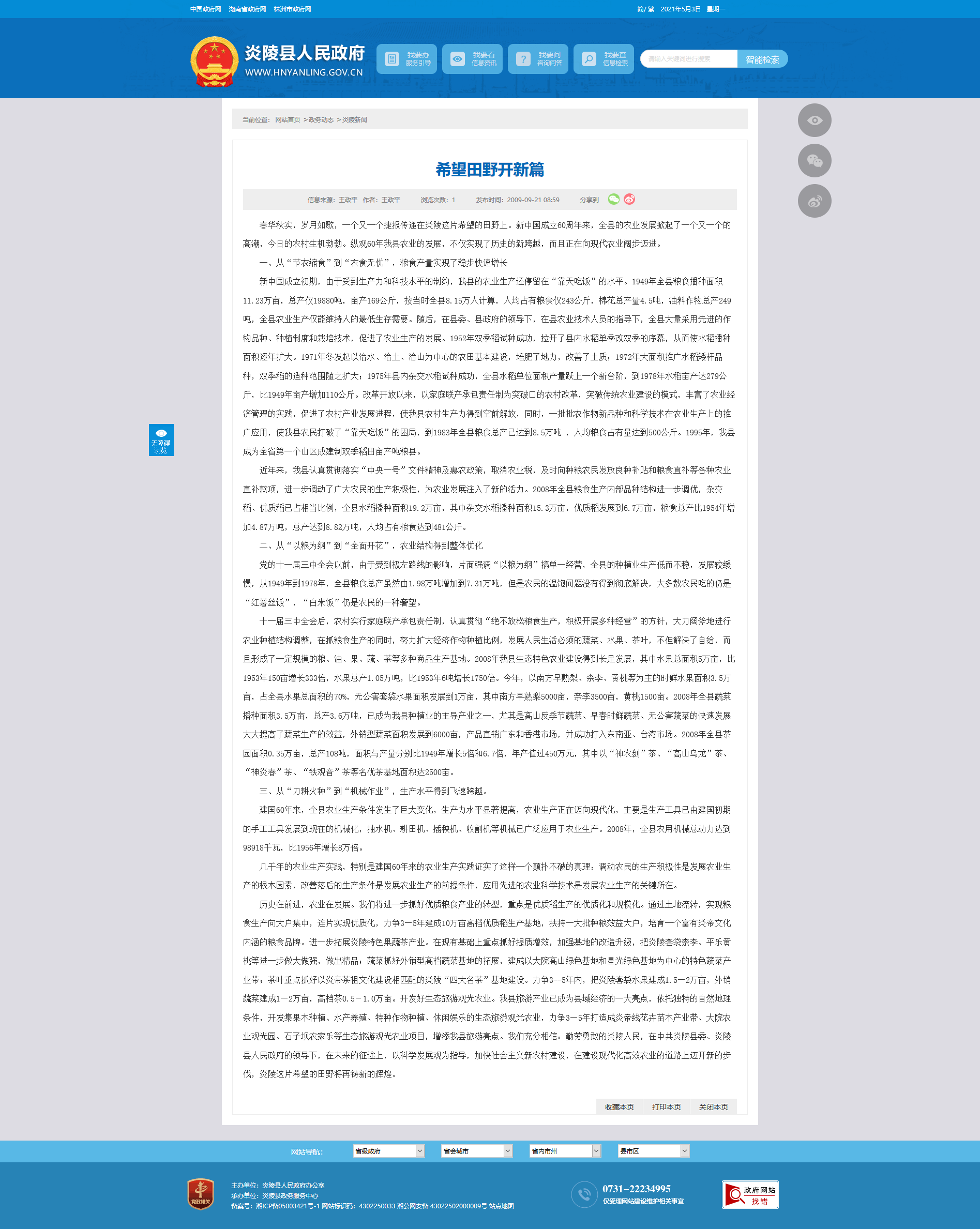 春华秋实,岁月如歌,一个又一个捷报传递在炎陵这片希望的田野上。新中国成立60周年来,全县的农业发展掀起了一个又一个的高潮,今日的农村生机勃勃。纵观60年我县农业的发展,不仅实现了历史的新跨越,而且正在向现代农业阔步迈进。