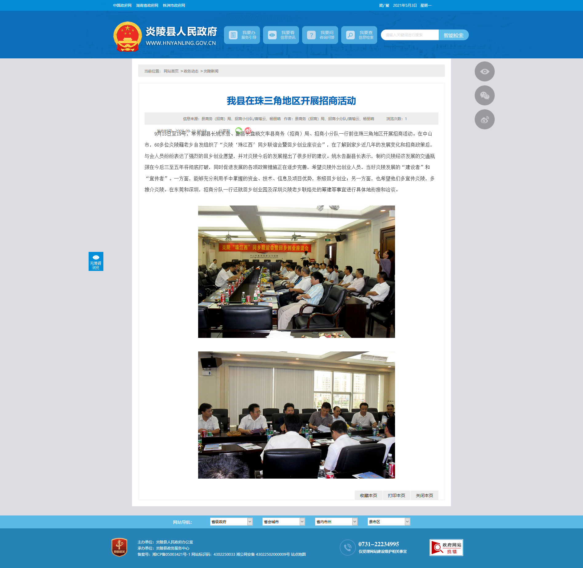 9月15日至19号,常务副县长姚永告、副县长盘晓文率县商务(招商)局、招商小分队一行前往珠三角地区开展招商活动。在中山市,60多位炎陵籍老乡自发组织了“炎陵‘珠江西’同乡联谊会暨回乡创业座谈会”,在了解到家乡近几年的发展变化和招商政策后,与会人员纷纷表达了强烈的回乡创业愿望,并对炎陵今后的发展提出了很多好的建议。姚永告副县长表示,制约炎陵经济发展的交通瓶颈在今后三至五年将彻底打破,同时促进发展的各项政策措施正在逐步完善,希望炎陵外出创业人员,当好炎陵发展的“建设者”和“宣传者”。一方面,能够充分利用手中掌握的资金、技术、信息及项目优势,积极回乡创业;另一方面,也希望他们多宣传炎陵,多推介炎陵。在东莞和深圳,招商分队一行还就回乡创业园及深圳炎陵老乡联络处的筹建等事宜进行具体地衔接和洽谈。