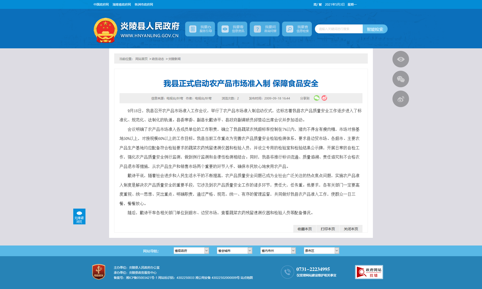 会议明确了农产品市场准入各成员单位的工作职责,确立了我县蔬菜农残超标率控制在7%以内,猪肉不得含有瘦肉精,市场对接基地50%以上,对接规模60%以上的工作目标。我县当前工作重点为完善农产品质量安全检验检测体系,要求县边贸市场、各超市、主要农产品生产基地均应配备符合检验要求的蔬菜农药残留速测仪器和检验人员,并设立专用的检验室和检验结果公示牌,开展日常的自检工作,强化农产品质量安全例行监测,做到例行监测和自律性检测相结合。同时,我县将推行标识流通、质量追溯、责任追究和不合格农产品退市等措施,从农产品生产和销售市场两个重要的环节入手,确保市民放心地食用农产品。