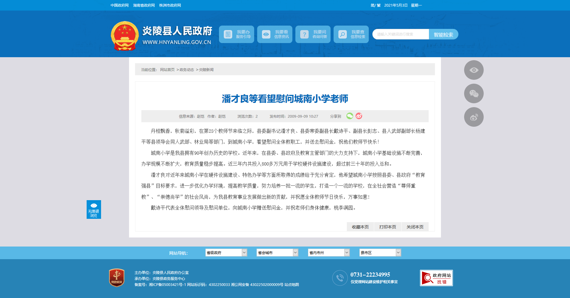 丹桂飘香,秋菊溢彩,在第25个教师节来临之际,县委副书记潘才良、县委常委副县长戴诗平、副县长彭志、县人武部副部长杨建平等县领导会同人武部、林业局等部门,到城南小学,看望慰问全体教职工,并送去慰问金,祝他们教师节快乐!